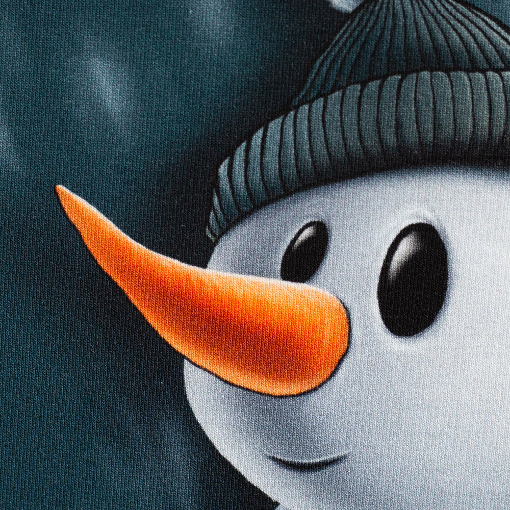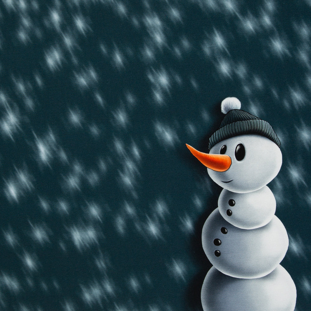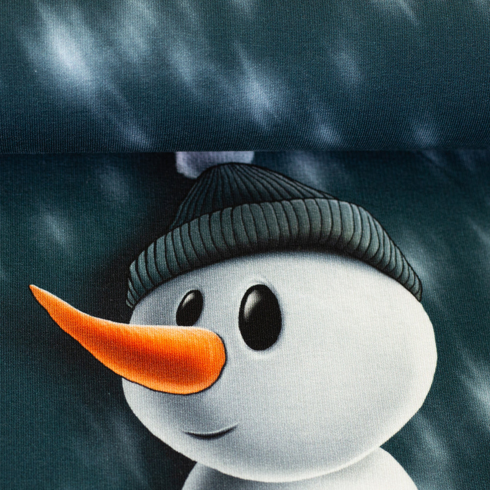 Hallo, Mr. Snowman! Gleich zwei Schneemänner stehen auf dem Panel bereit – groß, fröhlich und perfekt für winterliche Outfits. Der Kombistoff mit Schneeflocken macht die Kollektion komplett und lädt zu kreativen Ideen ein.