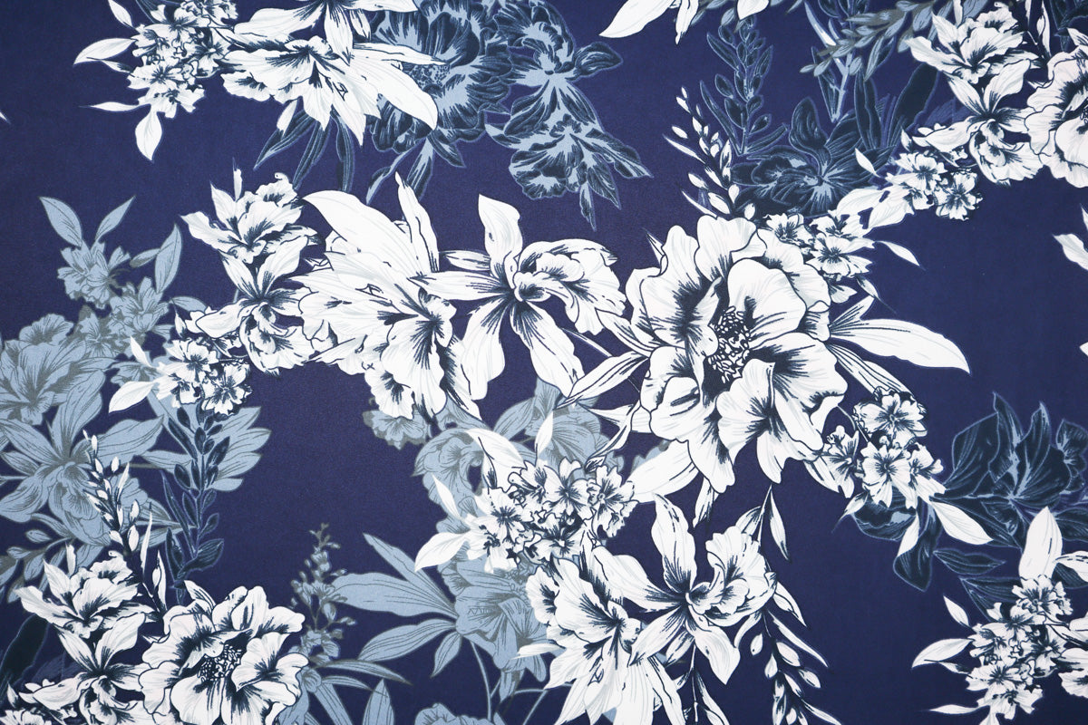Schöner, weich fallender Poly-Viskose Jersey mit romantischen Blumenmuster.
