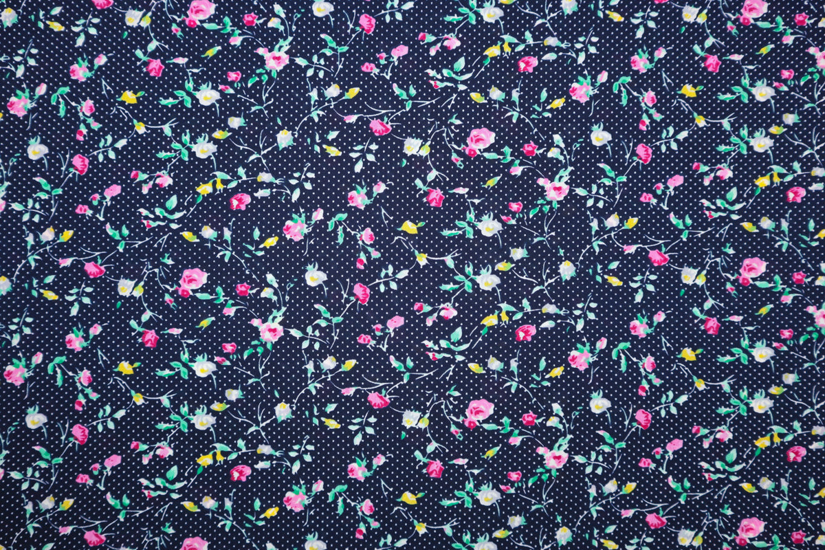 Schöner Polyester Voile mit kleinem Blumenmuster und weißen Mini-Pünktchen.
