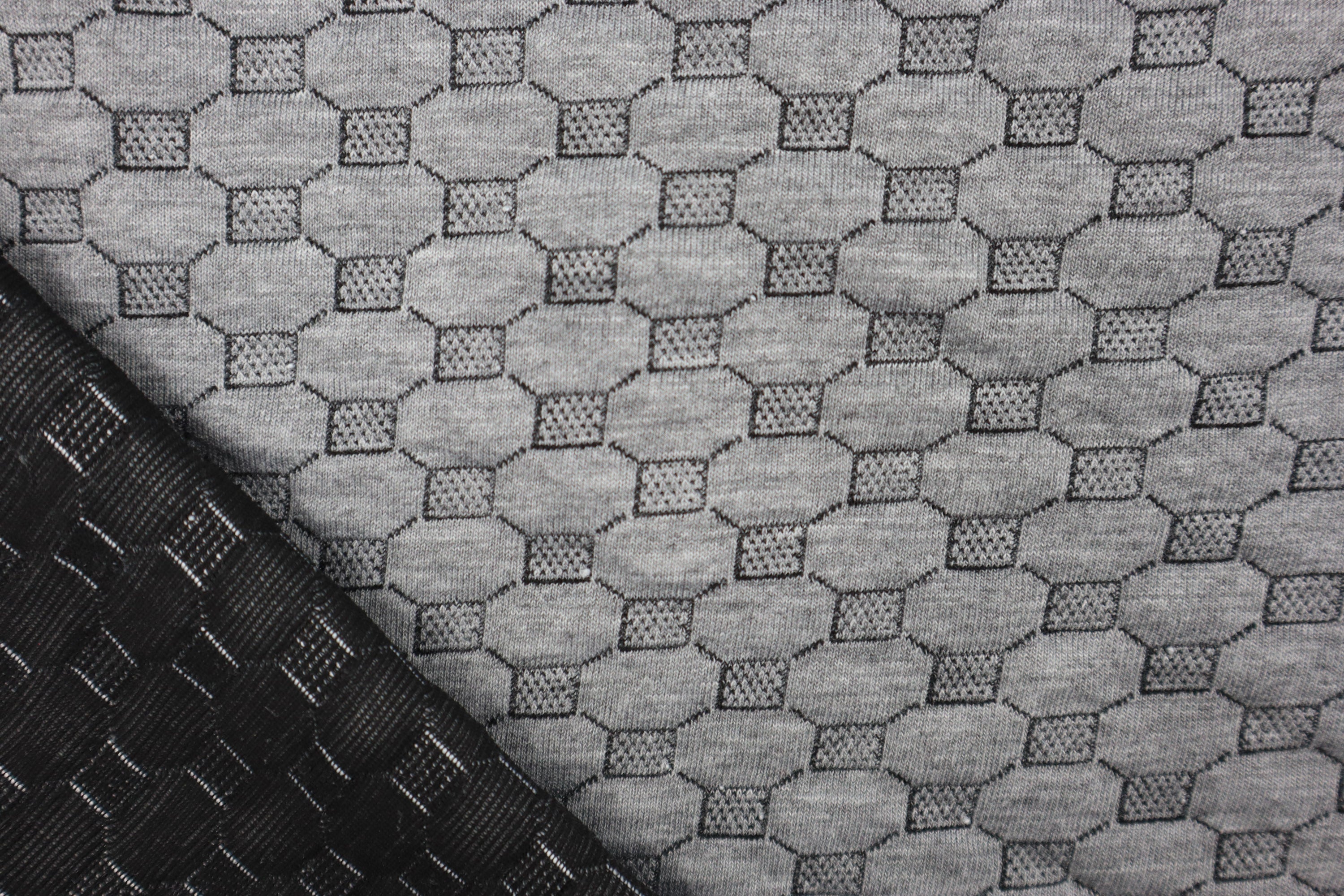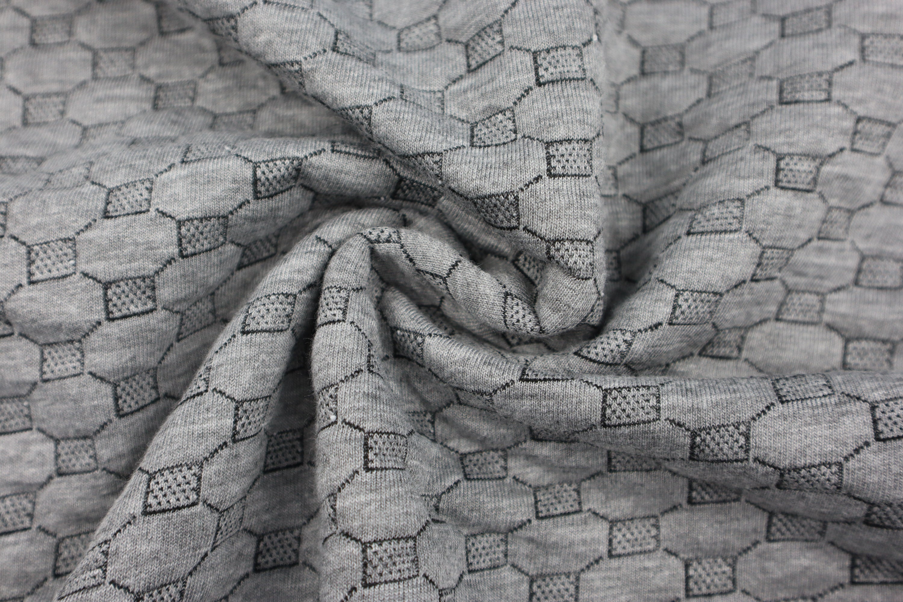 Grauer Jacquard-Jersey mit dezentem geometrischen Design.