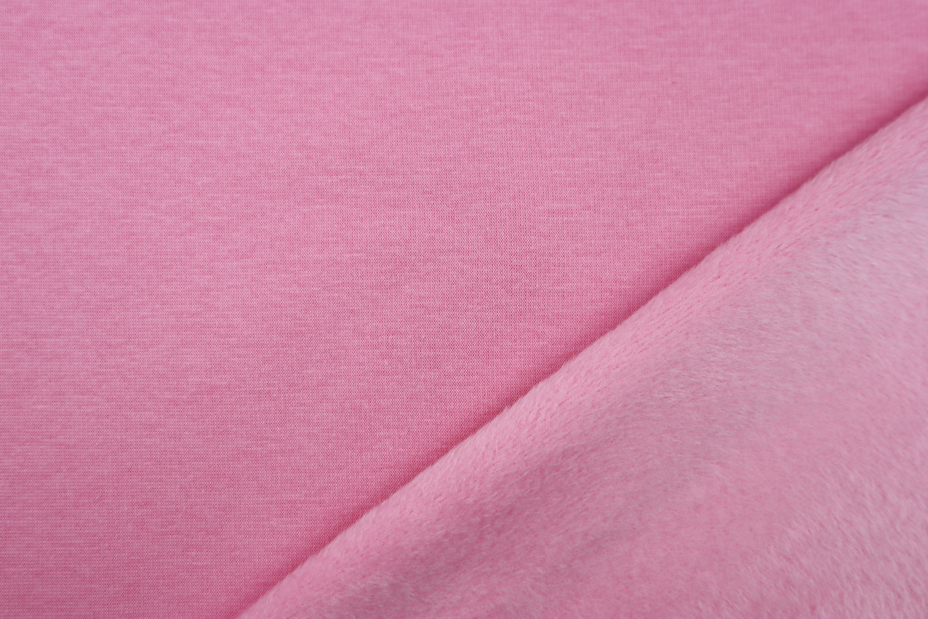 Die Vorderseite des Stoffes ist Sweat, die Rückseite ist weicher Fleece in Felloptik in gleicher Farbe.