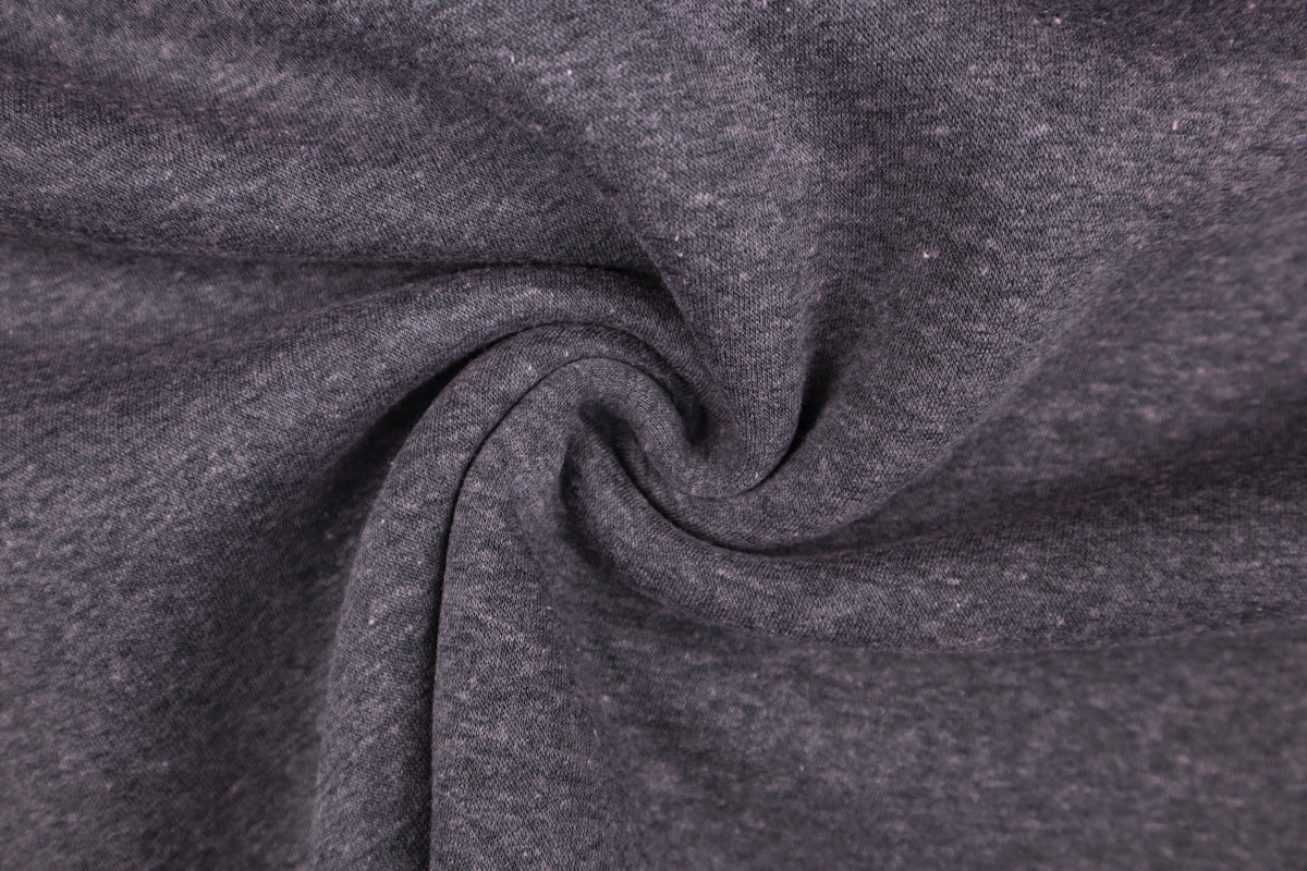 Melierter Sweatshirt-Stoff mit farblich passender, angerauter Abseite – ideal für kuschelige Bekleidung in der kälteren Jahreszeit.