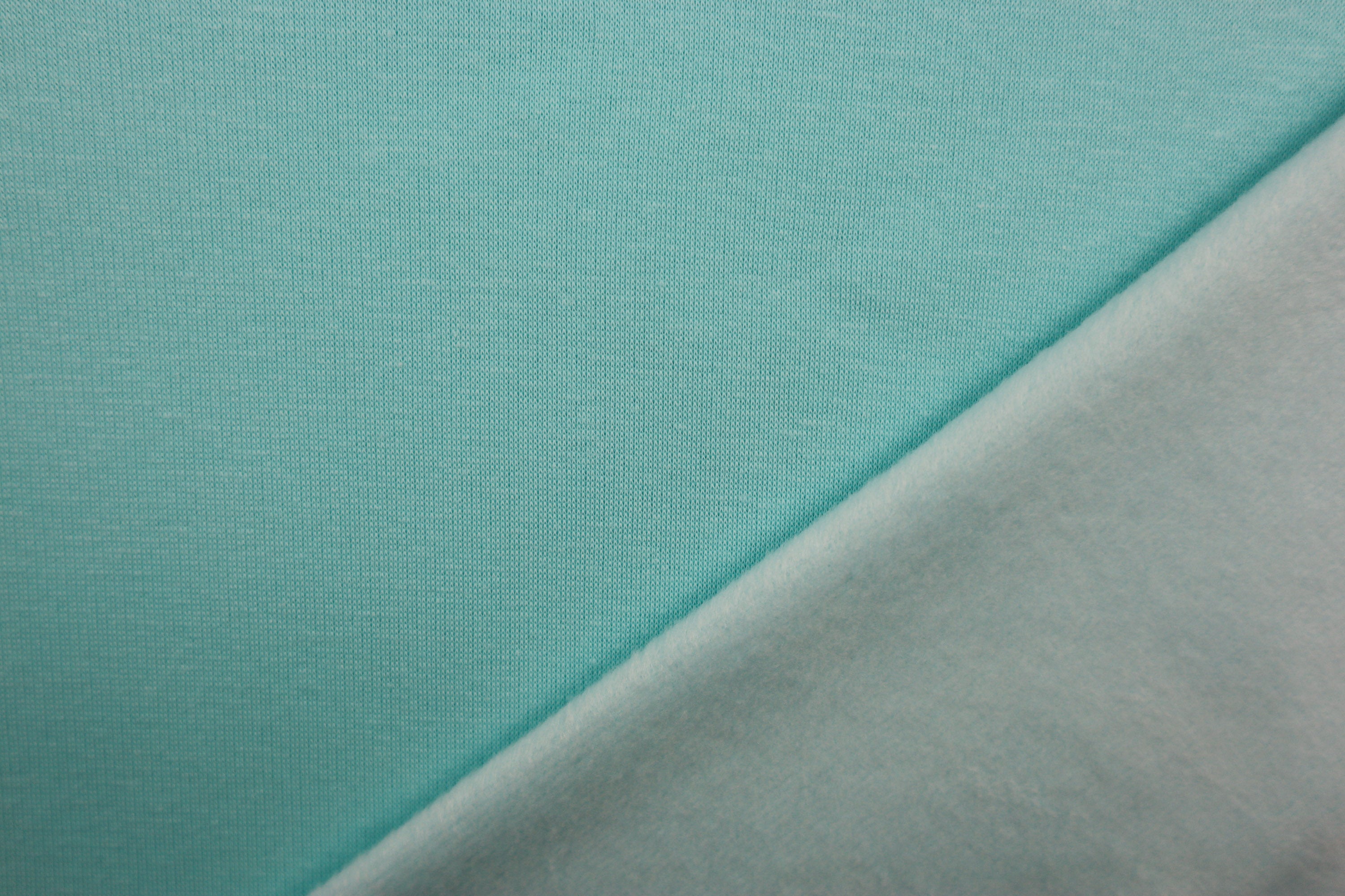 Die Vorderseite des Stoffes ist Sweat, die Rückseite ist weicher Fleece in Felloptik in gleicher Farbe.