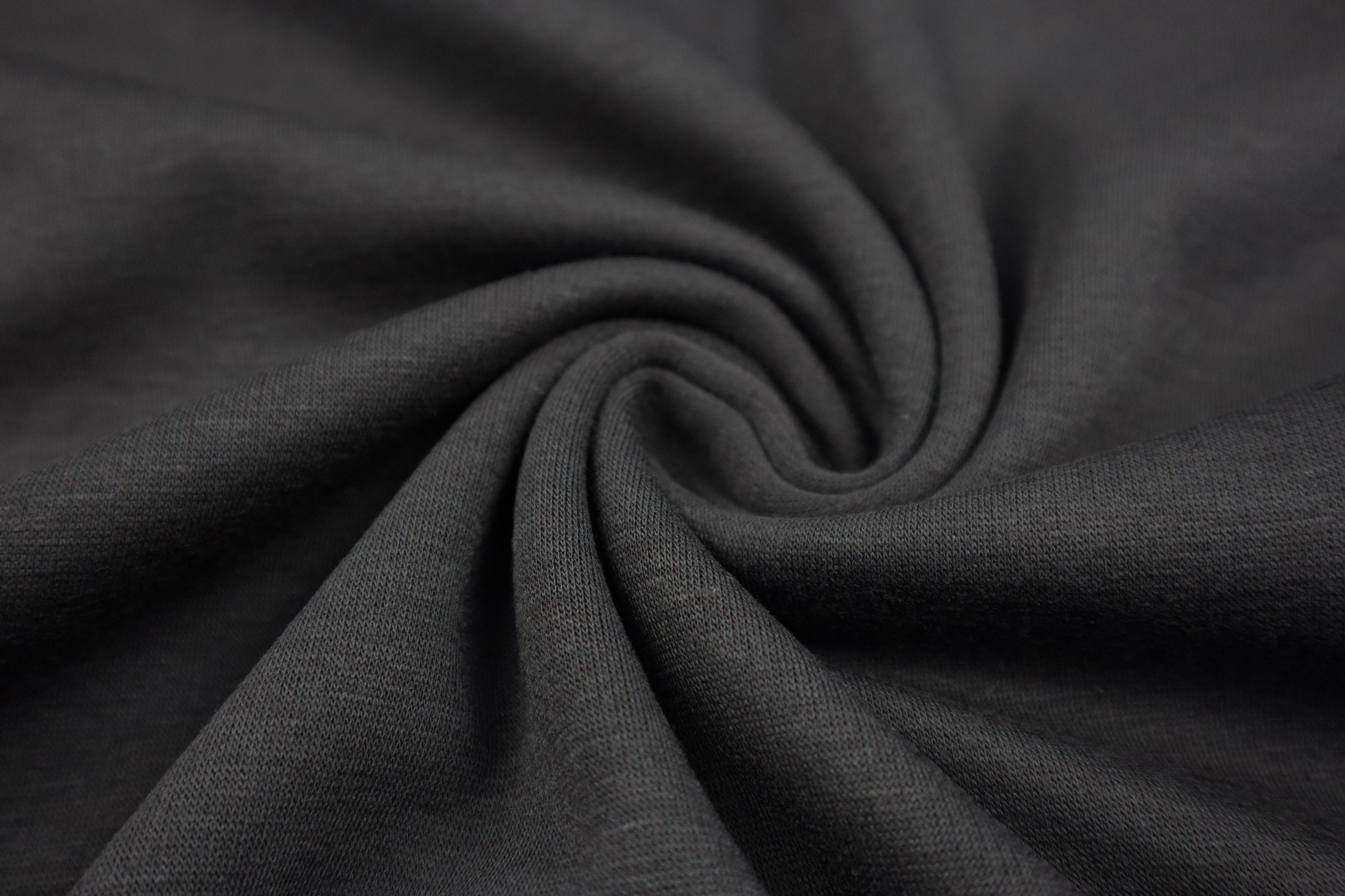 Die Vorderseite des Stoffes ist Sweat, die Rückseite ist weicher Fleece in Felloptik in gleicher Farbe.