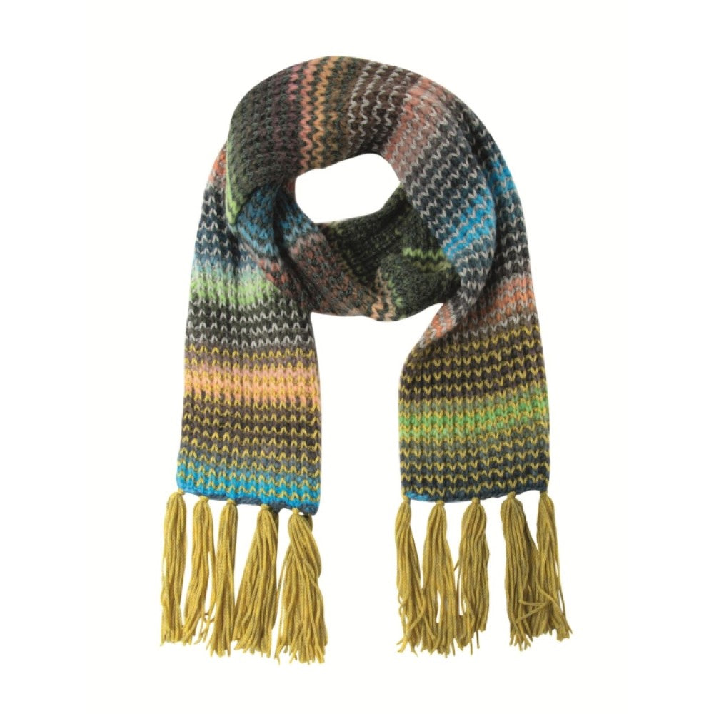 Der fertige Schal ist ca. 22 cm breit und ca. 200 cm lang (ohne Fransen).