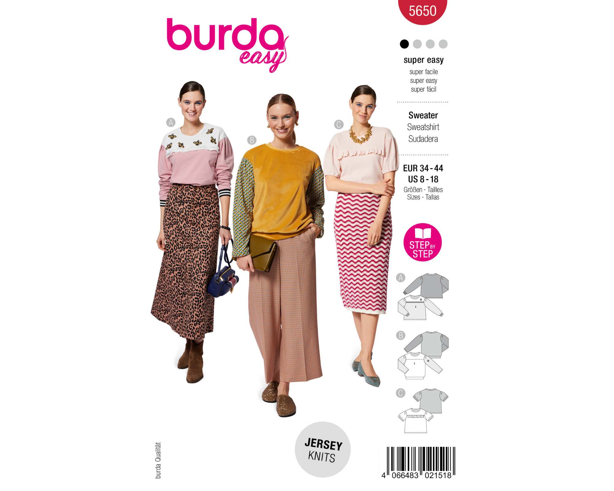 Das Schnittmuster beinhaltet die Größen 34 - 44.