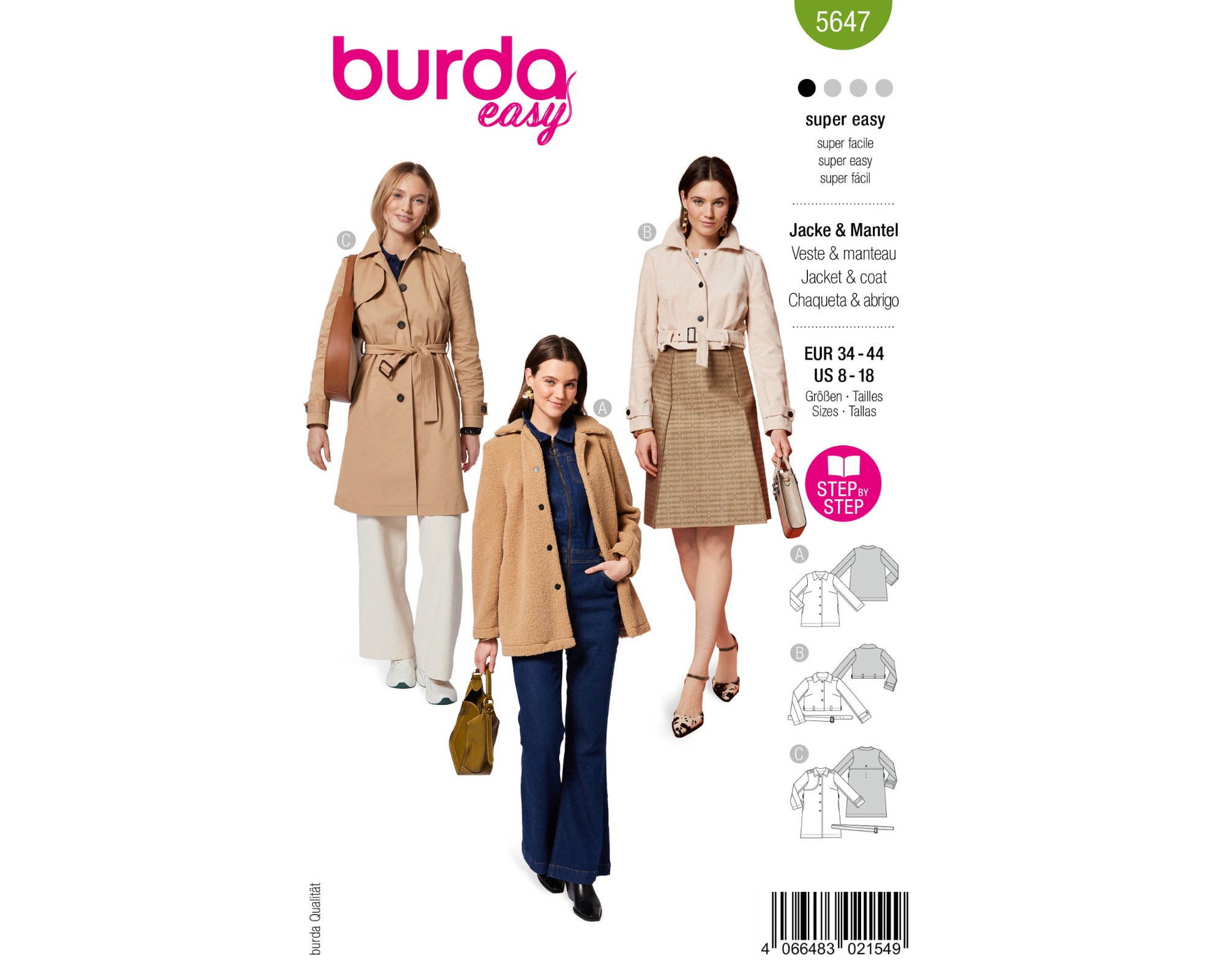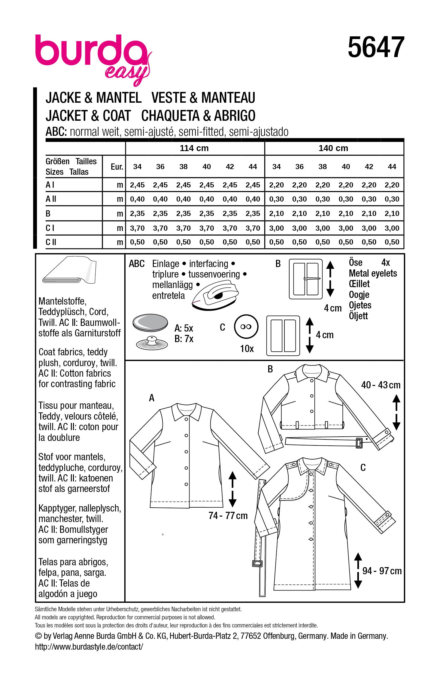 Das Schnittmuster beinhaltet die Größen 34 - 44.
