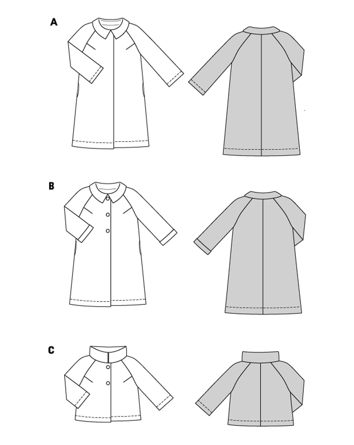 Dieses Jacken-Schnittmuster bietet drei stilvolle Designs im Retro-Look – ideal für Nähanfänger. Der knielange Mantel aus Leo-Jacquard mit Glanzfäden und Bubikragen wirkt elegant und wild zugleich. Schlichter ist der futterlose Mantel mit Schmuck- und Druckknöpfen. Die dritte Schnitt-Variante ist eine kurze, kuschelige Jacke aus dickem Wollstoff mit Stehkragen und Zierknöpfen. Ein Must-Have für deinen Herbstlook.