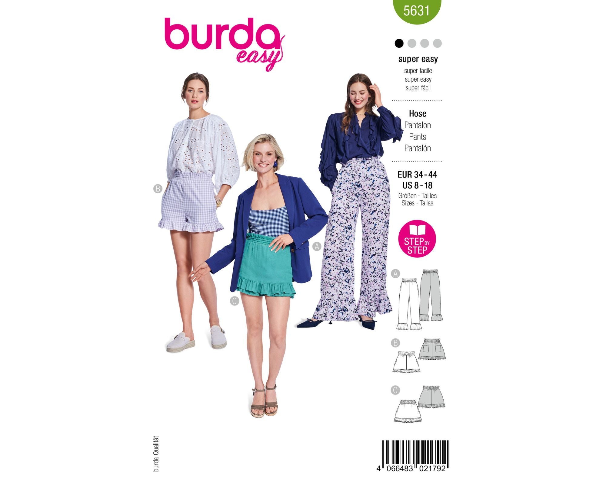 Das Schnittmuster beinhaltet die Größen 34 - 44.