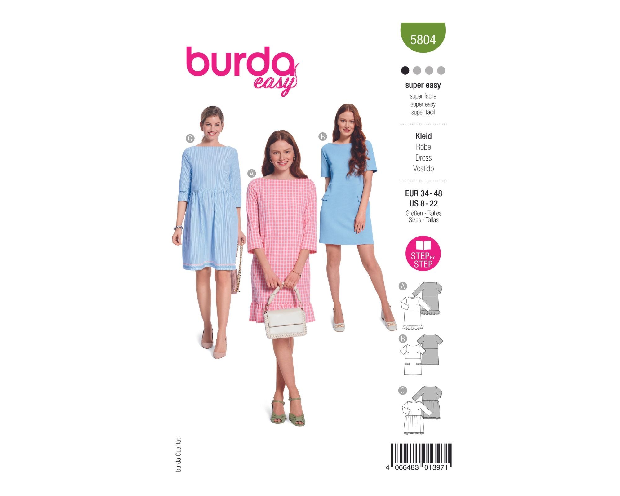 Das vielseitige Kleiderschnittmuster-Set bietet viel Raum für Individuaität und ! Nähe ein burda easy Kleid mit Vichykaros, U-Boot-Ausschnitt und Rüsche am Saum oder ein Etuikleid mit Sixties-Touch dank kurzer Ärmel und Waffelpikee. Für Herbstlooks einfach mit Blazer, Strumpfhose und Stiefeln stylen. Die weite Rockvariante mit hoher Taille und Zierborten passt für einen femininen Look. Drei stilvolle Kleiderschnitte in einem auf Schwierigkeitslevel 1!