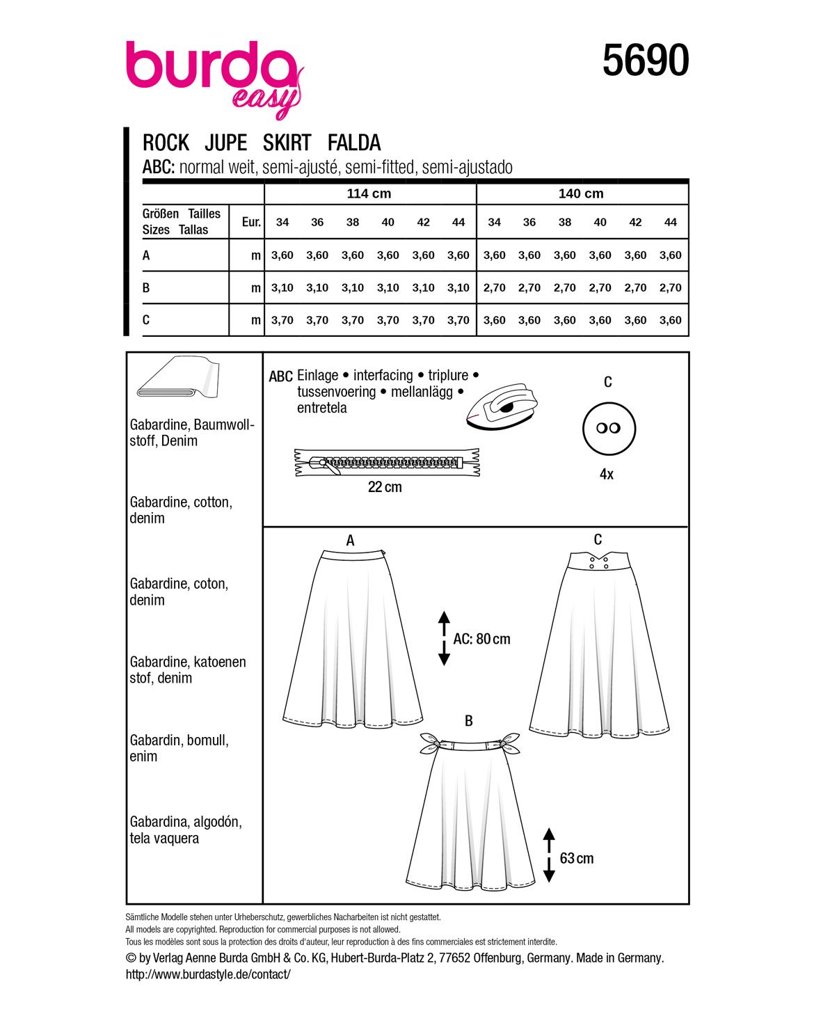 Das Schnittmuster beinhaltet die Größen 34 - 44.