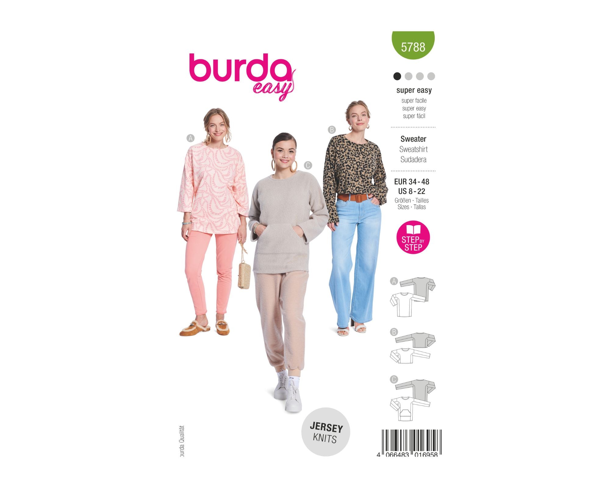 Unser Damen Sweater-Schnittmuster eignet sich auch für Nähbeginner! Ob lässiges Longshirt mit 3/4 Ärmeln für positive Vibes, heißes Cropped Shirt mit Animal-Print oder kuscheliger Strickpullover mit aufgesetzter Tasche – diese drei Varianten bieten für jeden Geschmack das Richtige. Aus Jersey, Strickstoff, French Terry oder Fleece genäht, garantieren sie Komfort und Style zugleich.