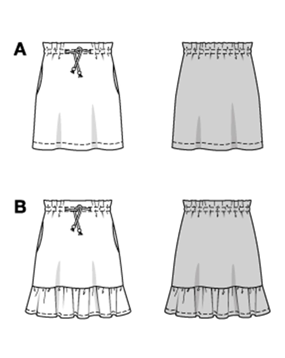 Diese süßen Miniröcke für Mädchen gelingen ohne viel Näherfahrung! Die erste Schnitt-Variante bezaubert mit einer mädchenhaften Rüsche und einem fröhlichen Fischprint, der Urlaubsstimmung verbreitet. Der zweite Rock punktet mit praktischen Nahttaschen und einem taillierten Schnitt, der durch einen Tunnelzug und überstehende Bänder vorne individuell angepasst werden kann.