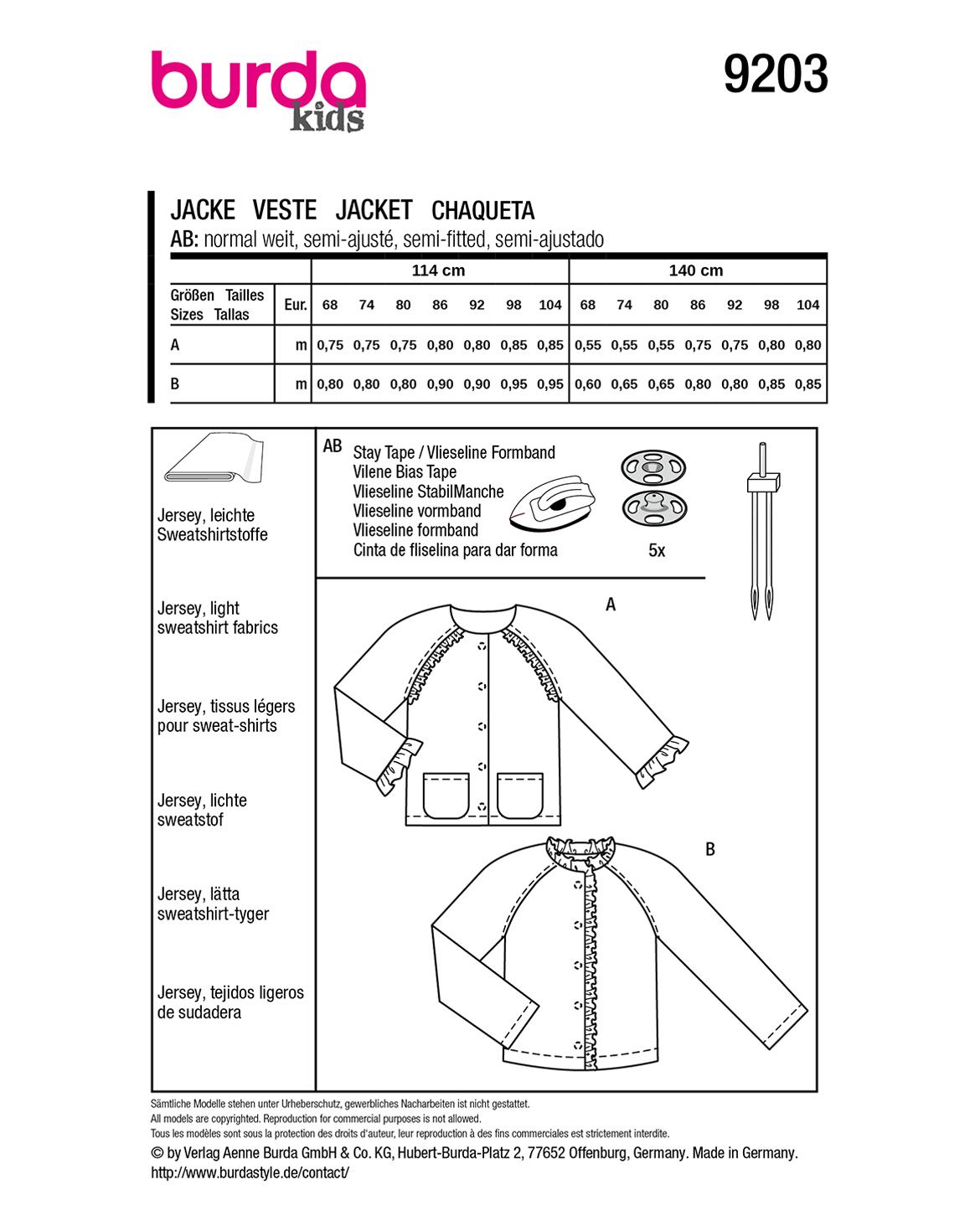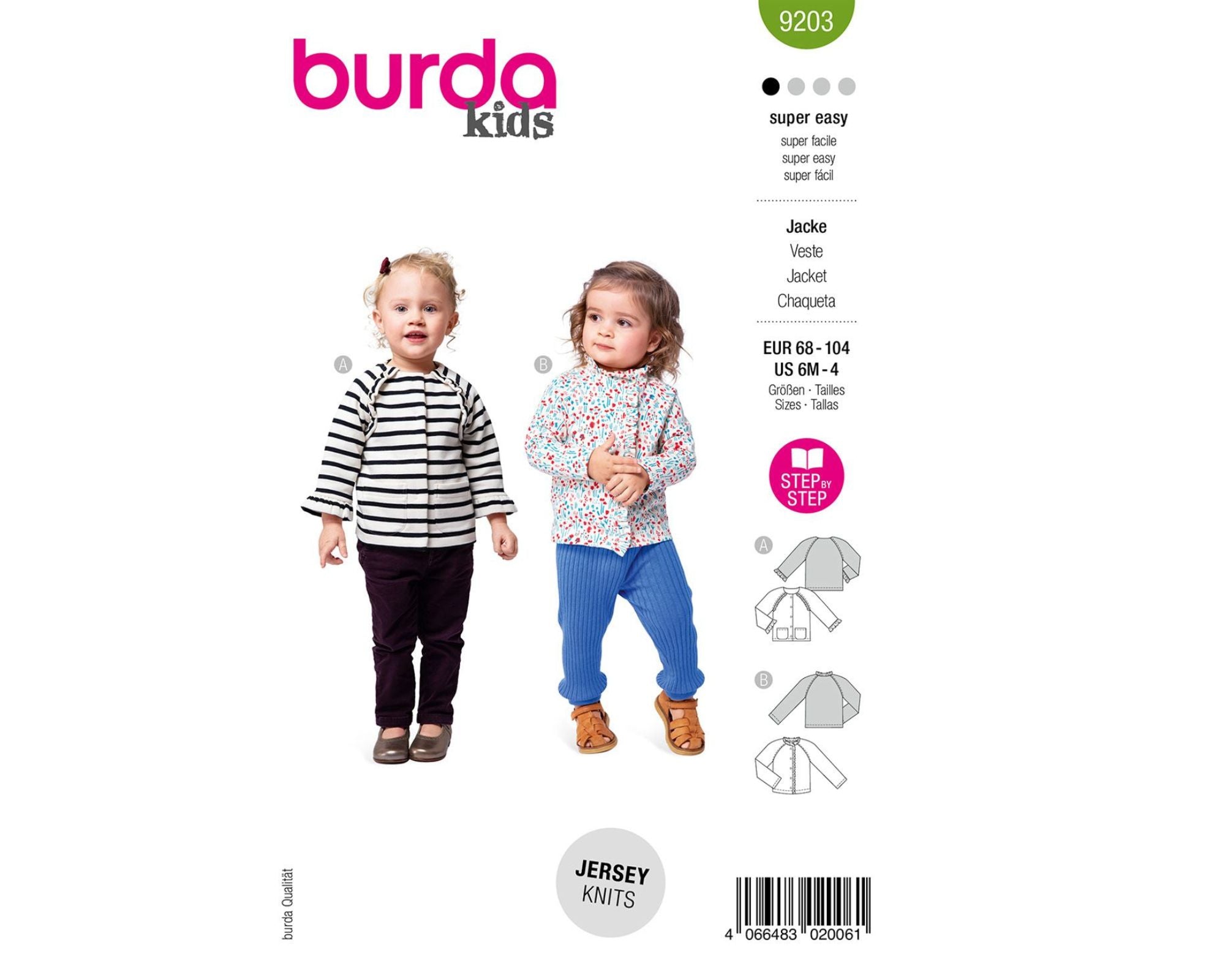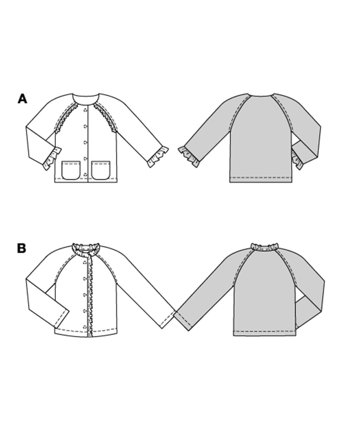 Entdecke dieses Schnittmuster, mit dem gleich zwei süße Kinderjacken easy genäht werden können. Die erste Jacke begeistert mit zauberhaften Rüschen an den Säumen und Raglanärmeln – ein echter Hingucker, der auch an den Taschen wiederholt werden kann. Die zweite Schnittvariation ist eine bequeme Sweatjacke mit einer Rüsche rund um den Ausschnitt und die vordere Kante. Ein tolles Projekt aus Jerseystoff!