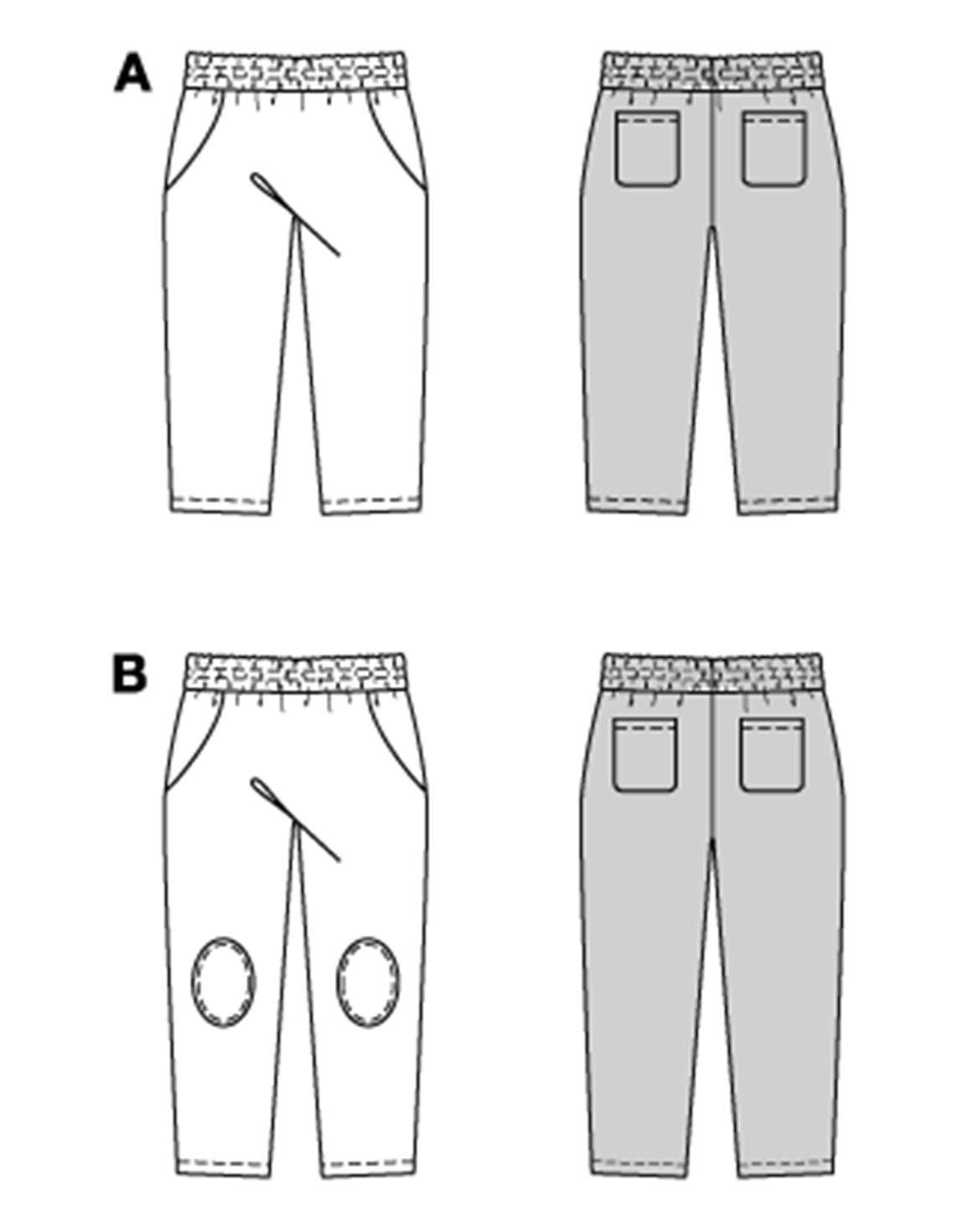 Dieses Schnittmuster für Kinder-Jogginghosen enthält zwei Schnittvarianten, die beide super leicht nachzunähen sind! Der erste Hosenschnitt punktet mit coolen, vorgefertigten Flicken an den Knien, die nicht nur lässig aussehen, sondern auch für mehr Stabilität sorgen. Die zweite Schnittvariation ist besonders bequem, ohne Schrittnaht, sodass Muster ungestört verlaufen. Der breite Gummibund garantiert perfekten Halt bei Sport und Spiel.