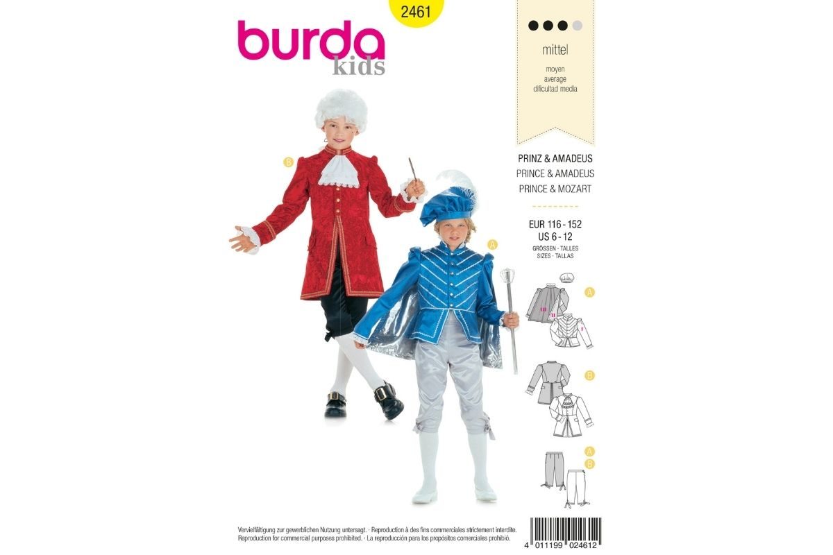 AB körpernah. A Prinzenjacke mit rückw. angenähtem Cape, dazu passend die Ballonmütze. B Mozartjacke mit langen Schößchen, Klappen, Ärmelaufschlägen und Bortenverzierung sowie Jabot. AB schmale Kniebundhose mit seitl. Reißverschluss.