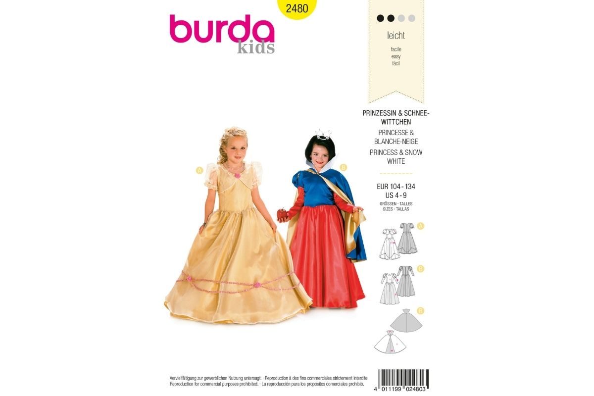 AB normal weit. Kleid mit weitem gekräuselten Rock. A mit kurzen Puffärmeln, Überrock aus Organza, mit Borten und Blüten verziert. B mit geschlitzten Puffärmeln und separatem Cape mit hohem Kragen.