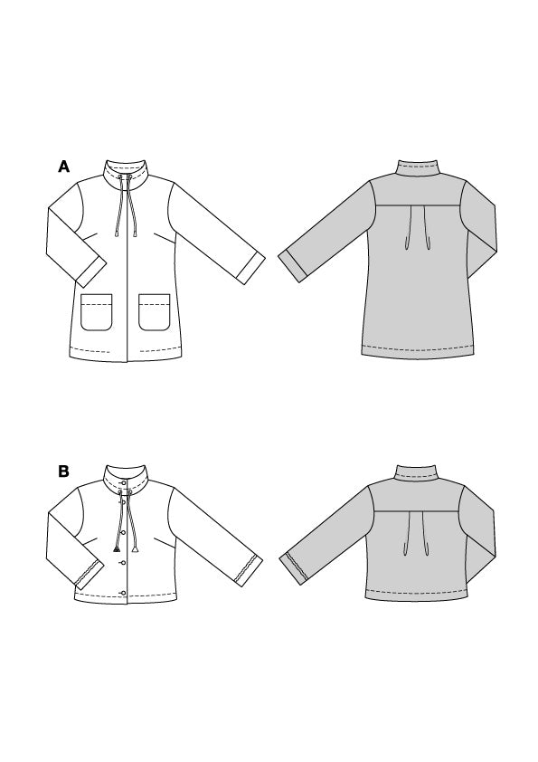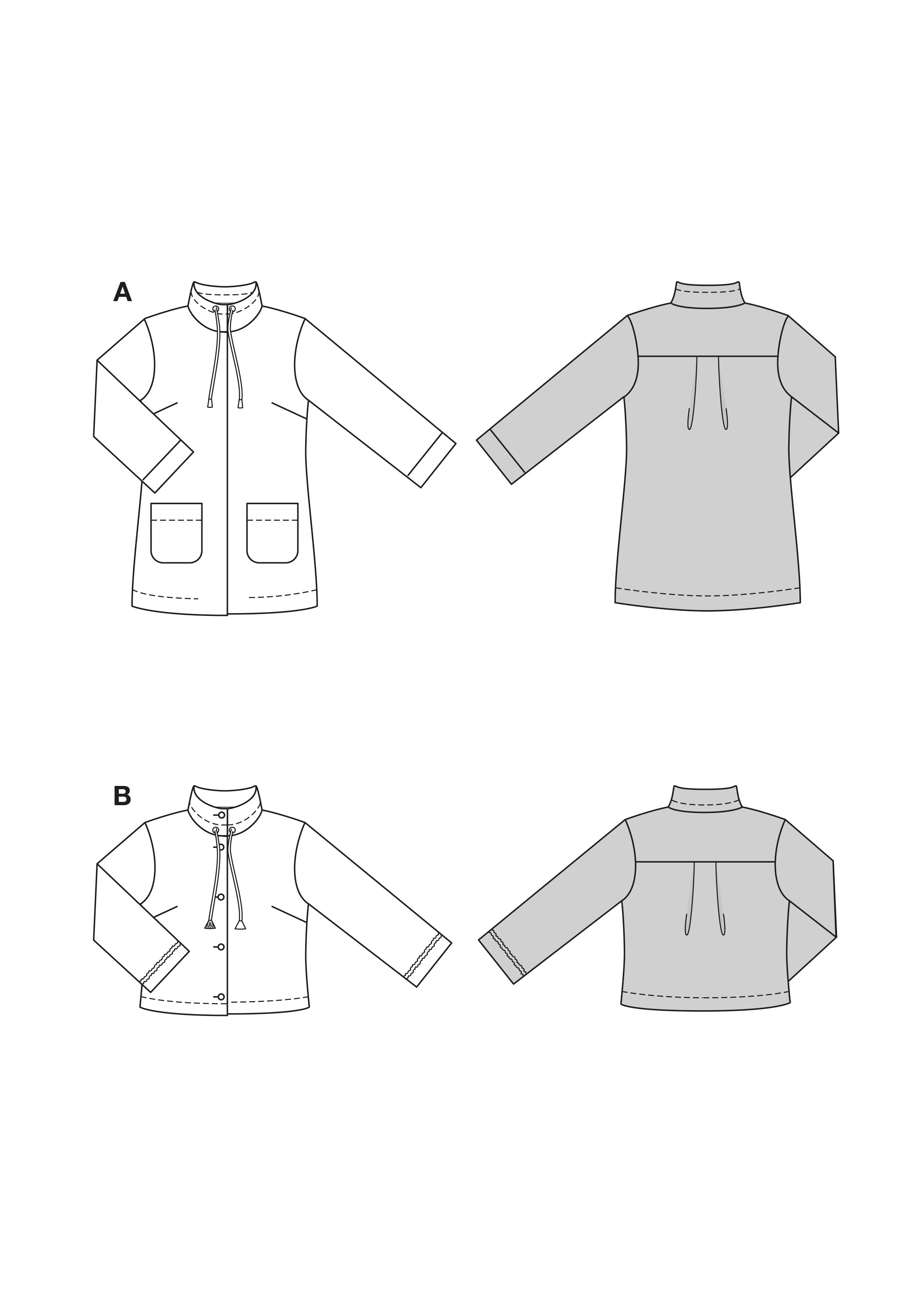 Verleihe deinem Look besondere Akzente mit diesen Parka-Varianten! Das erste Modell überzeugt mit hohem Stehkragen, verdeckter Knopfleiste und großen Taschen – sportlich inspiriert, aber einfach zu nähen. Das zweite verwandelt den Anorak-Schnitt in ein Couture-Meisterwerk: aufregend gemusterte Baumwolle, feine Druckknöpfe, Perlenbänder und Quasten verleihen dem Modell künstlerischen Flair. Ideal für alle, die sportlichen Chic mit eleganten Details kombinieren möchten.