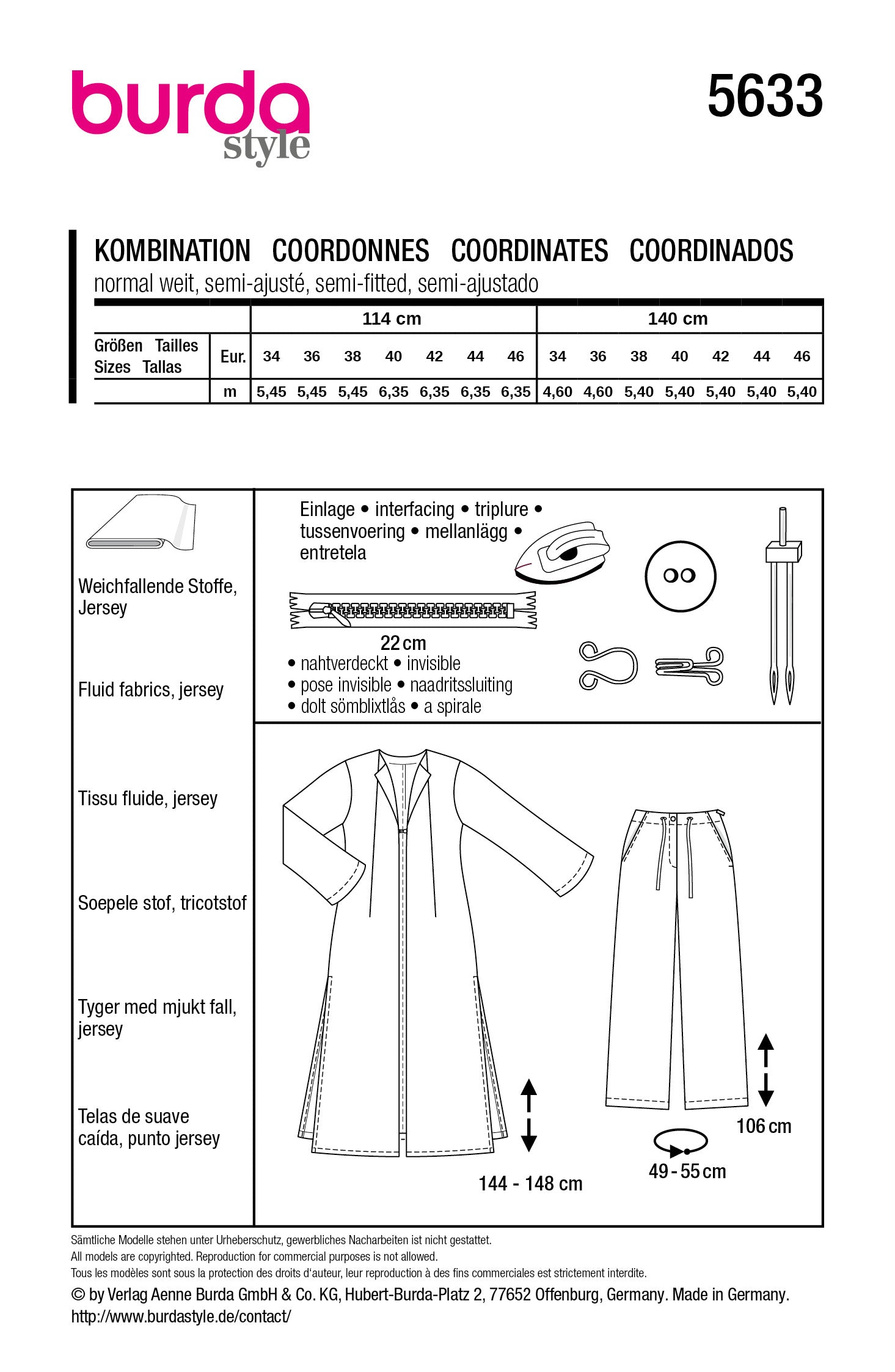Das Schnittmuster beinhaltet die Größen 36 - 46.