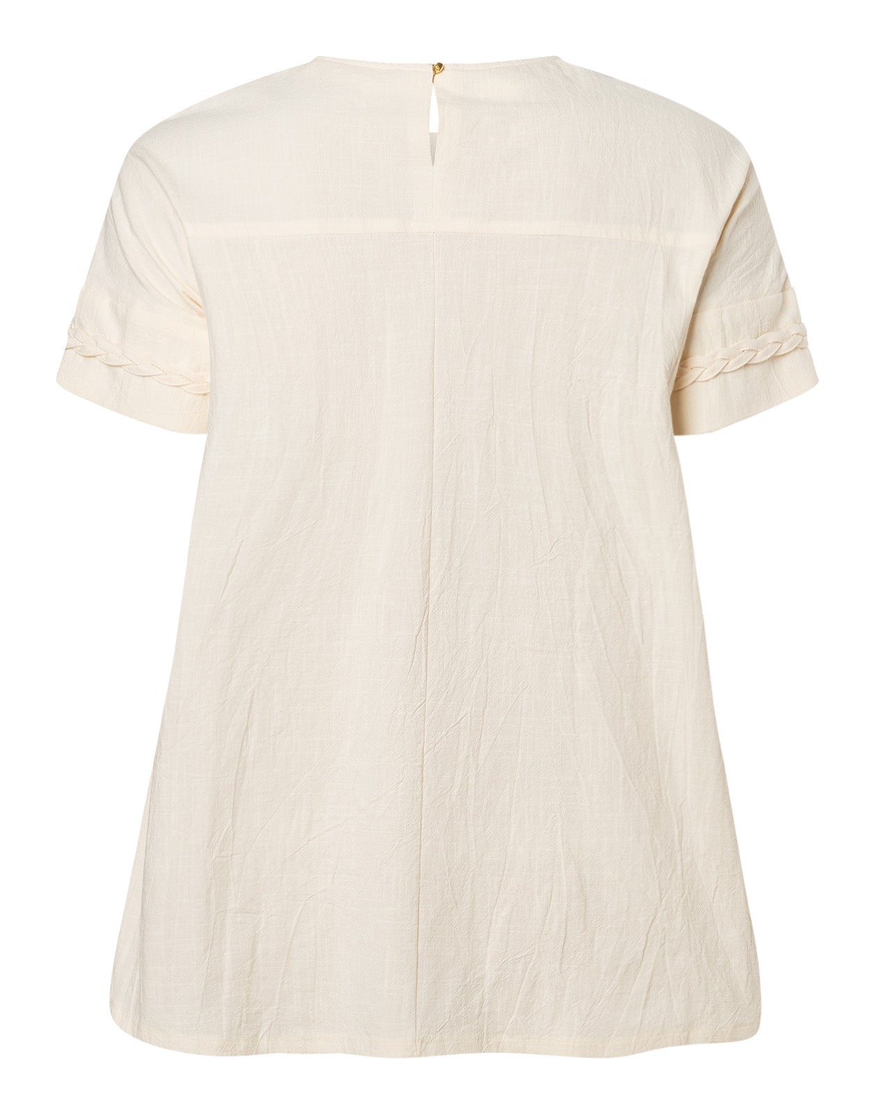 Diese beiden Modelle spielen mit luftigen Schnitten und raffinierten Details: ein Kleid mit weitem Fall und selbst geflochtenen Bändern an den Ärmeln sowie eine Bluse mit Kellerfalte vorn und Flechtdetails an den Ärmeln. Clevere Details und hochwertige Verarbeitung verleihen jedem Teil einen stilvollen Auftritt.