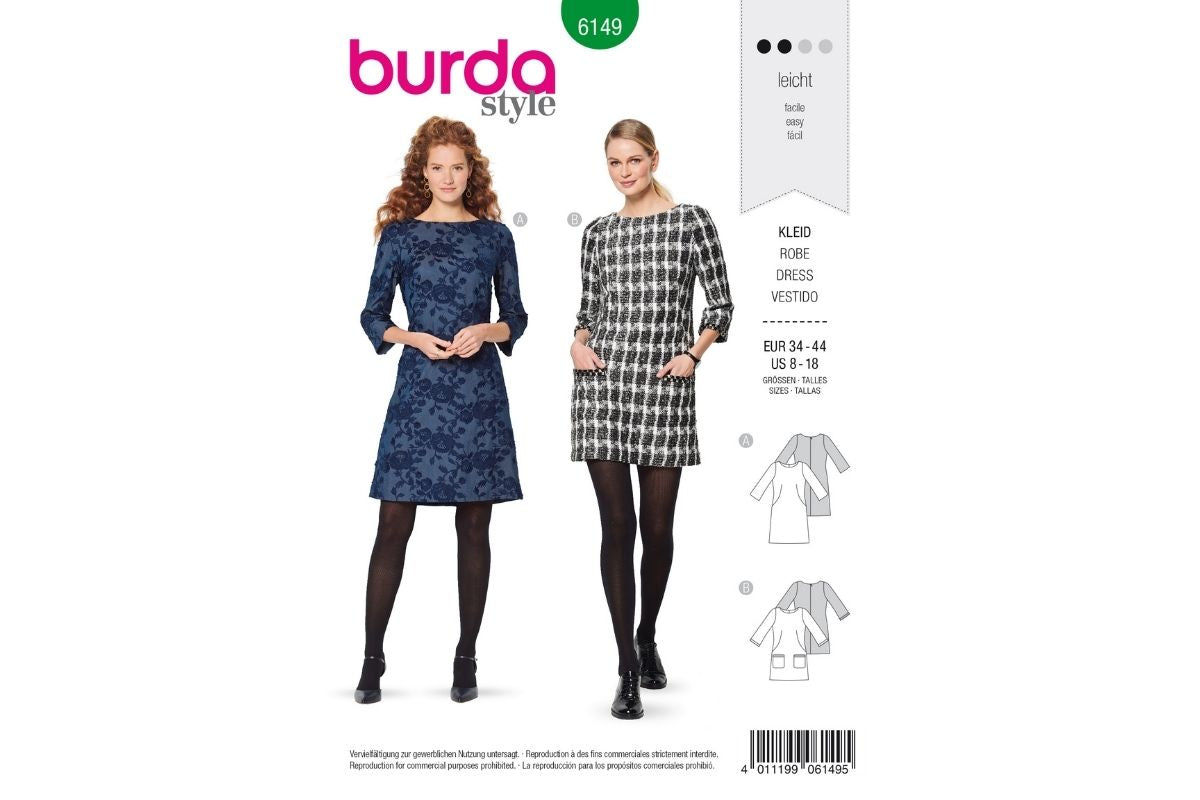 Elegantes knielanges Kleid mit Spitze in der Variante A und 7/8 Ärmel, bei Variante B hat das Kleid aufgesetzte Taschen. Ideal für das nächste Dinner oder auch für die Freizeit. Leicht zu nähen!