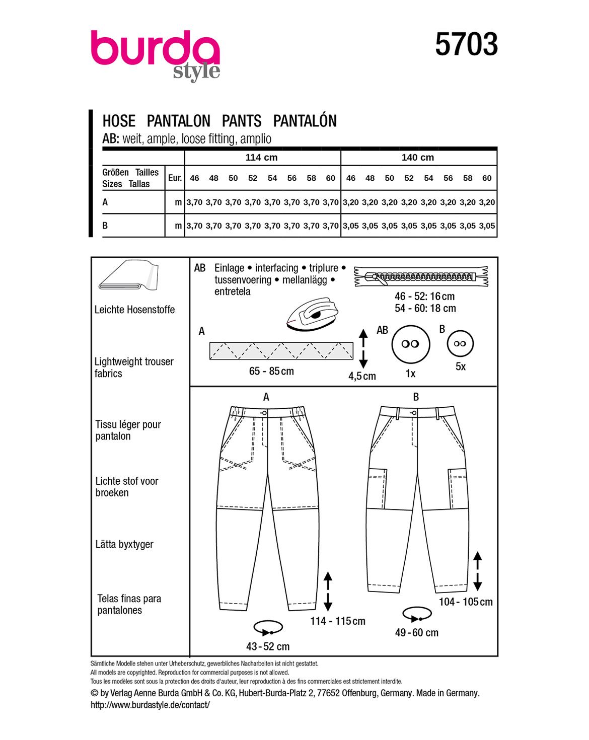 Das Schnittmuster beinhaltet die Größen 46 - 60.