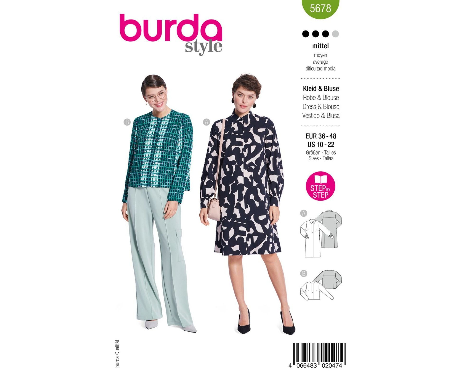 Dieses Schnittmuster für Kleid und Bluse ist perfekt geeignet für Näherinnen mit Erfahrung. Das erste Modell ist ein Mini-Kleid im lässigen, weiten Schnitt mit plakativen Prints und verdeckter Pololeiste – inspiriert von Twiggys ikonischen Looks, aber modern interpretiert. Die zweite Schnittvariante setzt auf einen eleganten Schnitt aus Crêpe Marocaine, einem schweren Krepp mit subtil glänzender Oberfläche, perfekt für einen edlen Look.