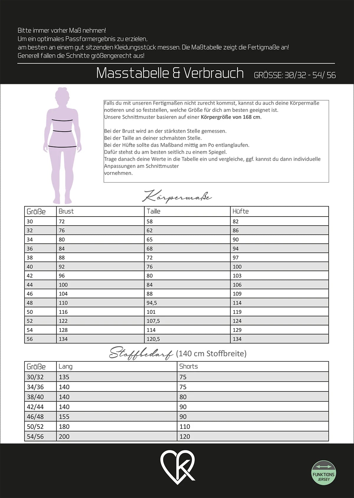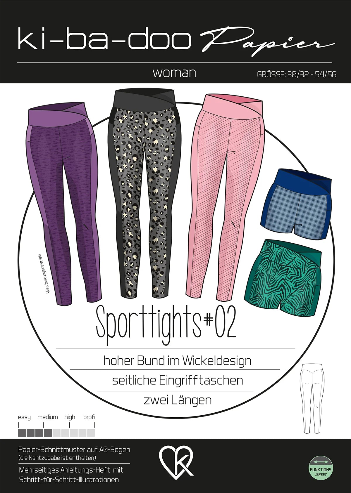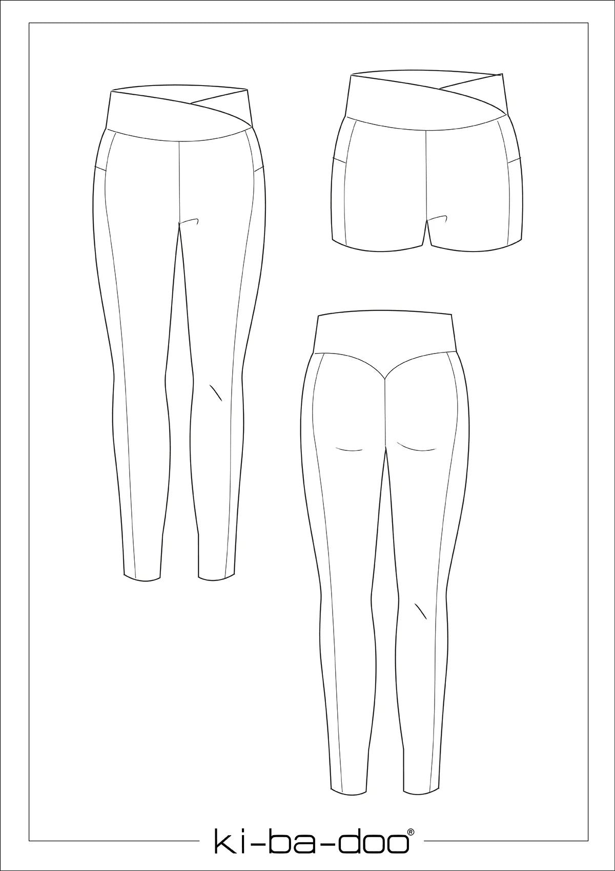 Unsere neue Sporttights #2 mit Taillenbund im Wickeldesign hat einen seitlichen Einsatz, der perfekt zum Kombinieren verschiedener Stoffdesigns verwenden werden kann. Zudem hat sie praktische seitliche Taschen, so kannst du immer deinen Schlüssel oder dein Smartphone dabeihaben. Für eine schöne Silhouette und den perfekten Sitz hat der rückseitige Bund eine v-förmige Linienführung. Im Schnitt findest du auch eine Shorts-Variante- ideal für das sommerliche Workout. Bei der Stoffwahl empfehlen wir dir die Verarbeitung von bielastischen Sport- und Funktionsstoffen.