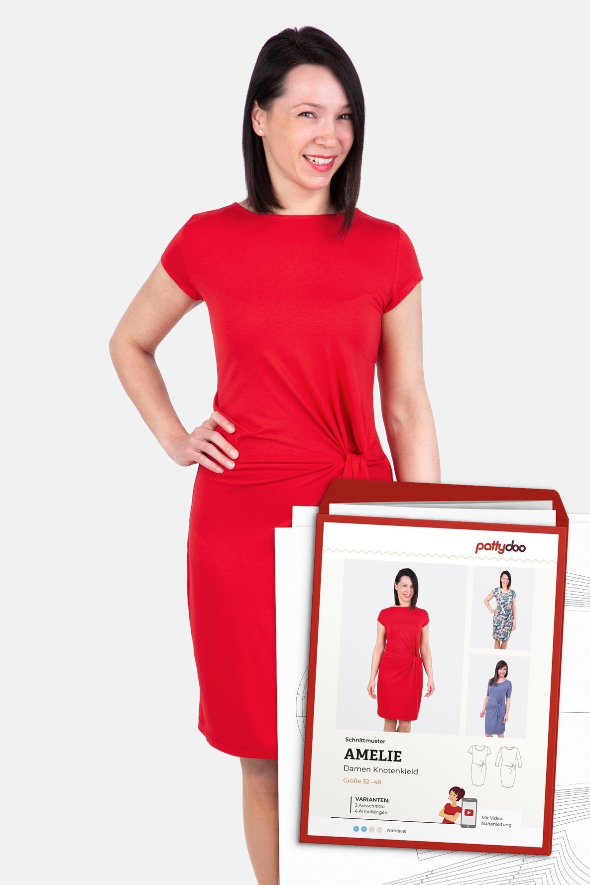 Näh dir mit unserem Papierschnittmuster “Amelie” ein elegantes Jerseykleid mit extravagantem Knoten-Detail, mit dem du alle Blicke auf dich ziehen wirst.