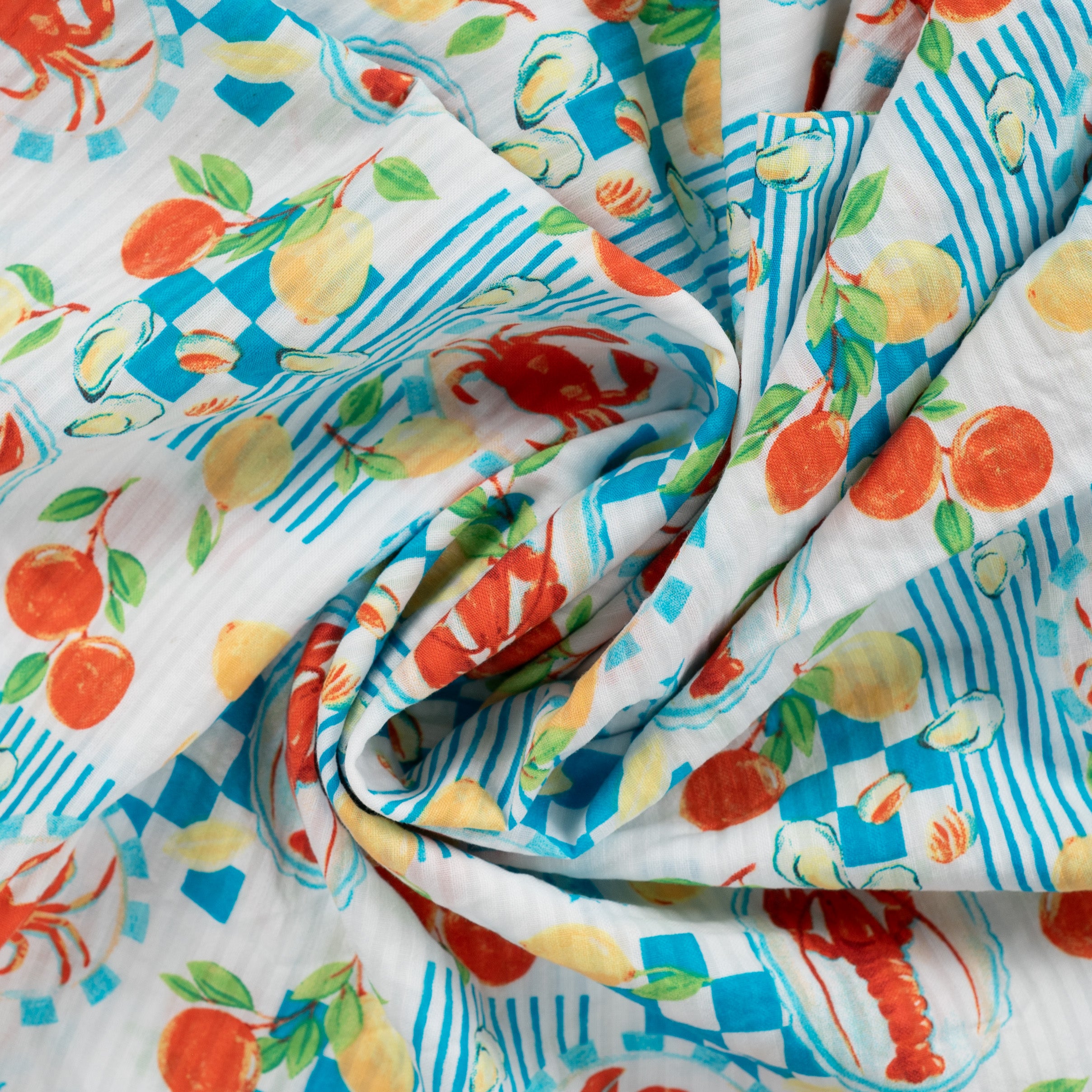 Toller Seersuckerstoff in mit Meerestieren und Früchten.