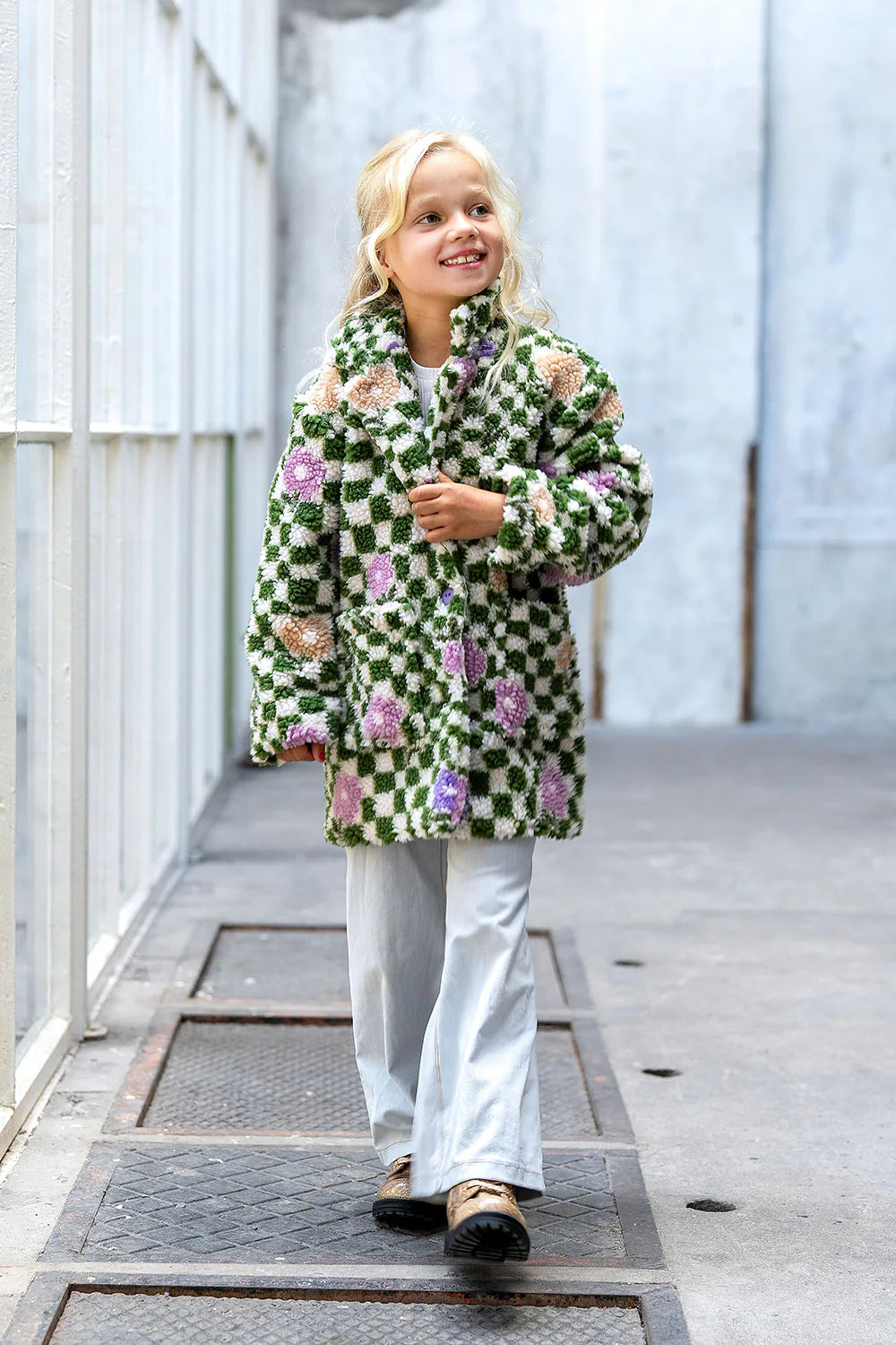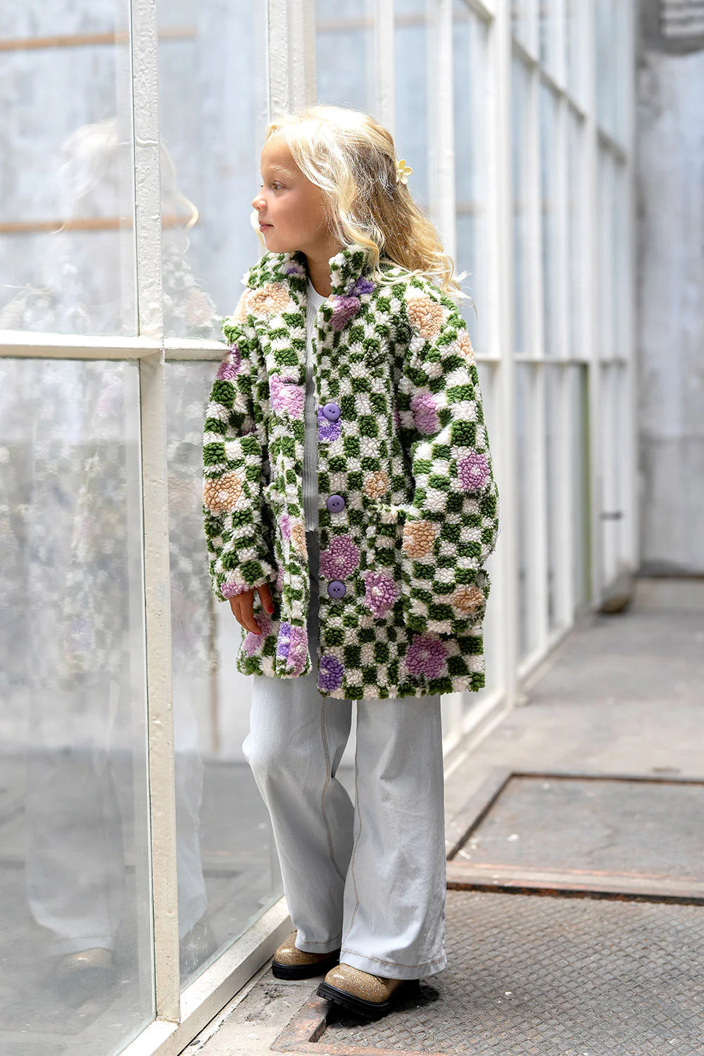 Toller, kuschelig weicher Sherpa-Fleece mit Blumenmuster uaf kariertem Grund..