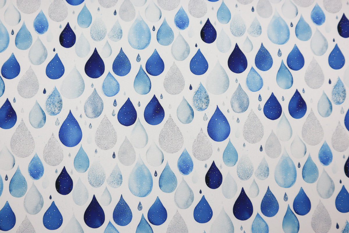 Schönes Muster mit unterschiedlichen Regentropfen auf hellem Hintergrund.
