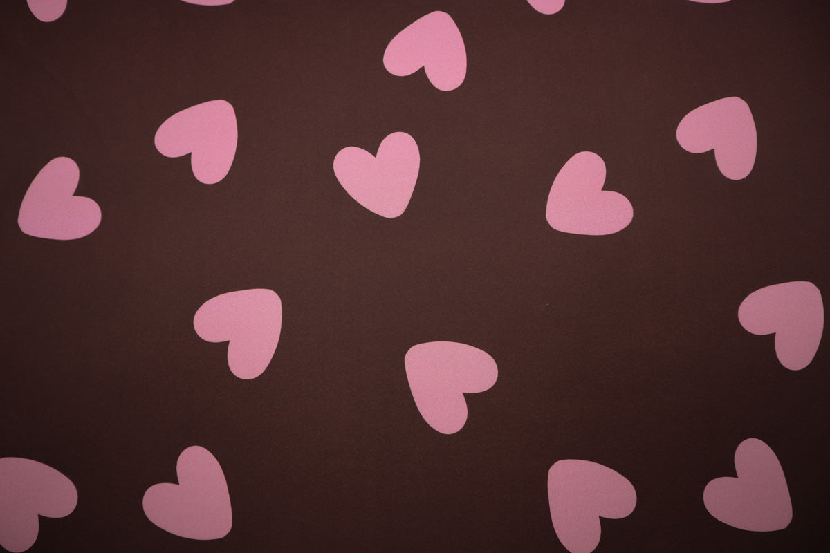Tolles Muster mit rosafarbenen Herzen auf warm, braunem Hintergrund.