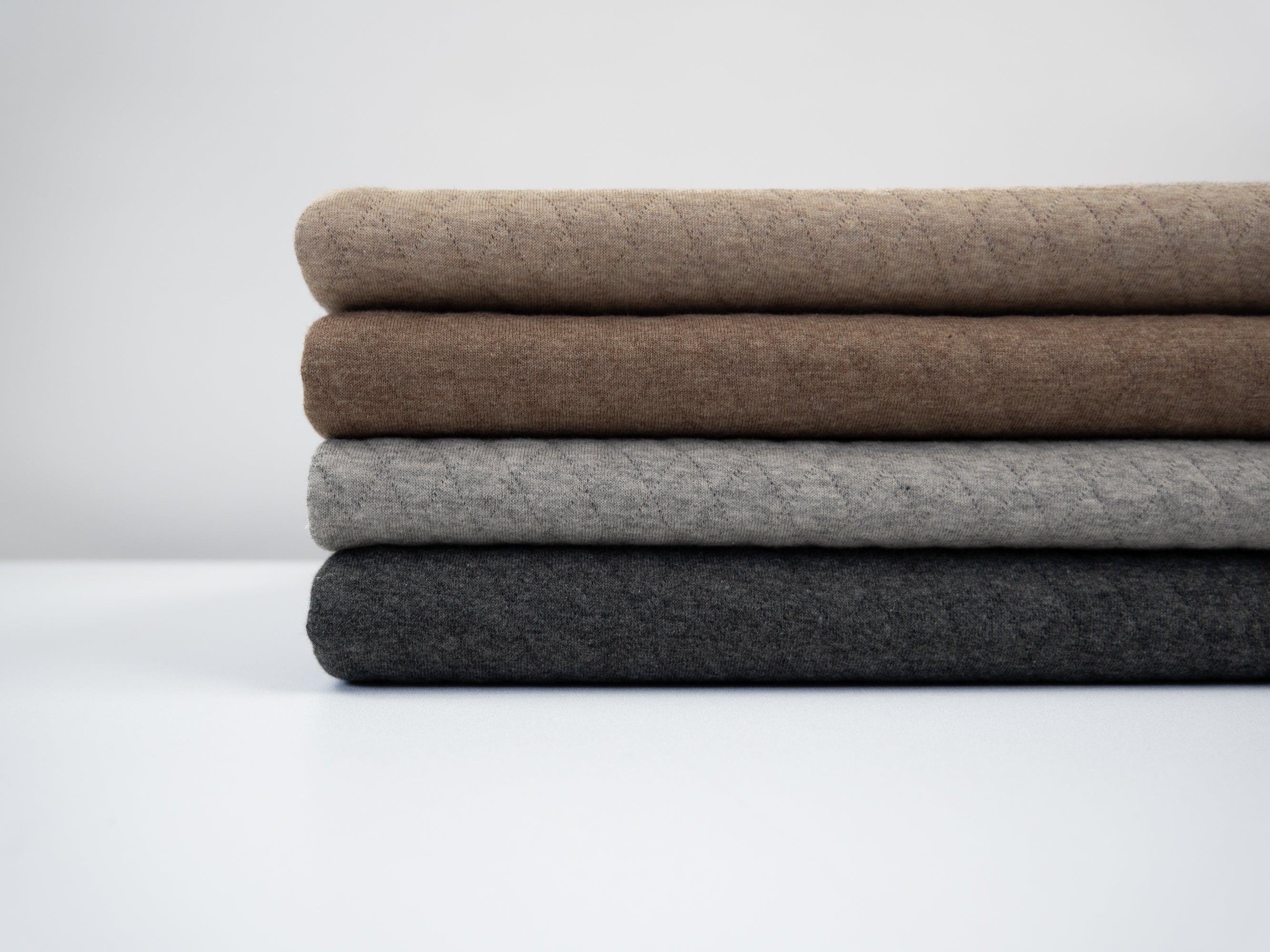 Toller Steppjersey von Swafing, der mit seiner 3 cm hohen Rautensteppung sofort ins Auge fällt. Die melierte Ergänzung zu Steppstoff Anni Uni.