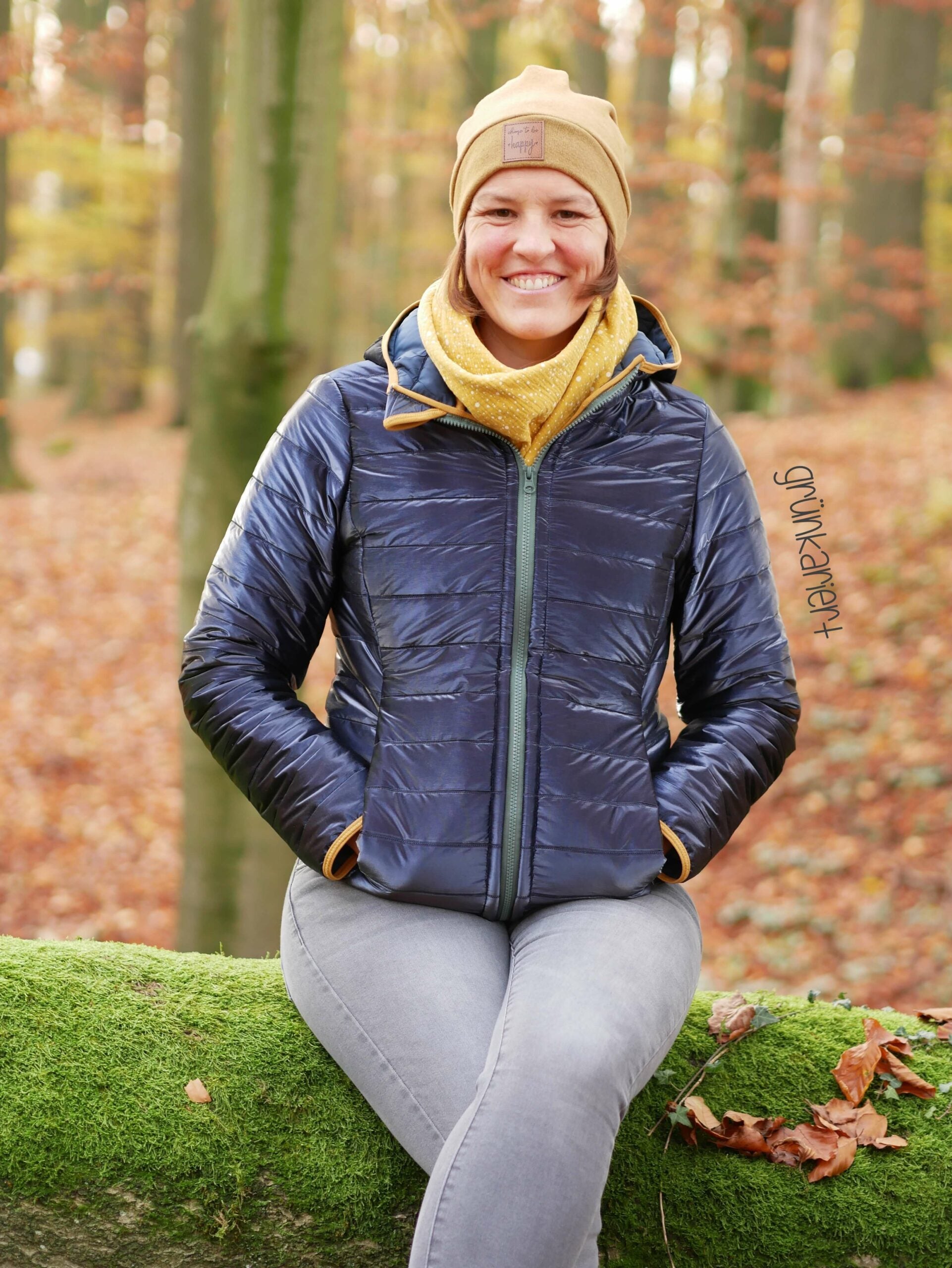 Herrlich leicht und doch wärmend. Die Abseite des Stoffes ist dunkelblau.