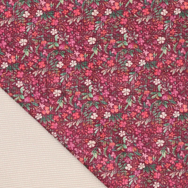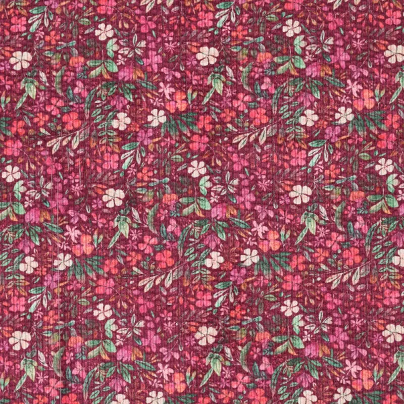 Super schöner Feincord Stoff mit Blumen- und Blättermuster - genau das Richtige für die kommende Saison.