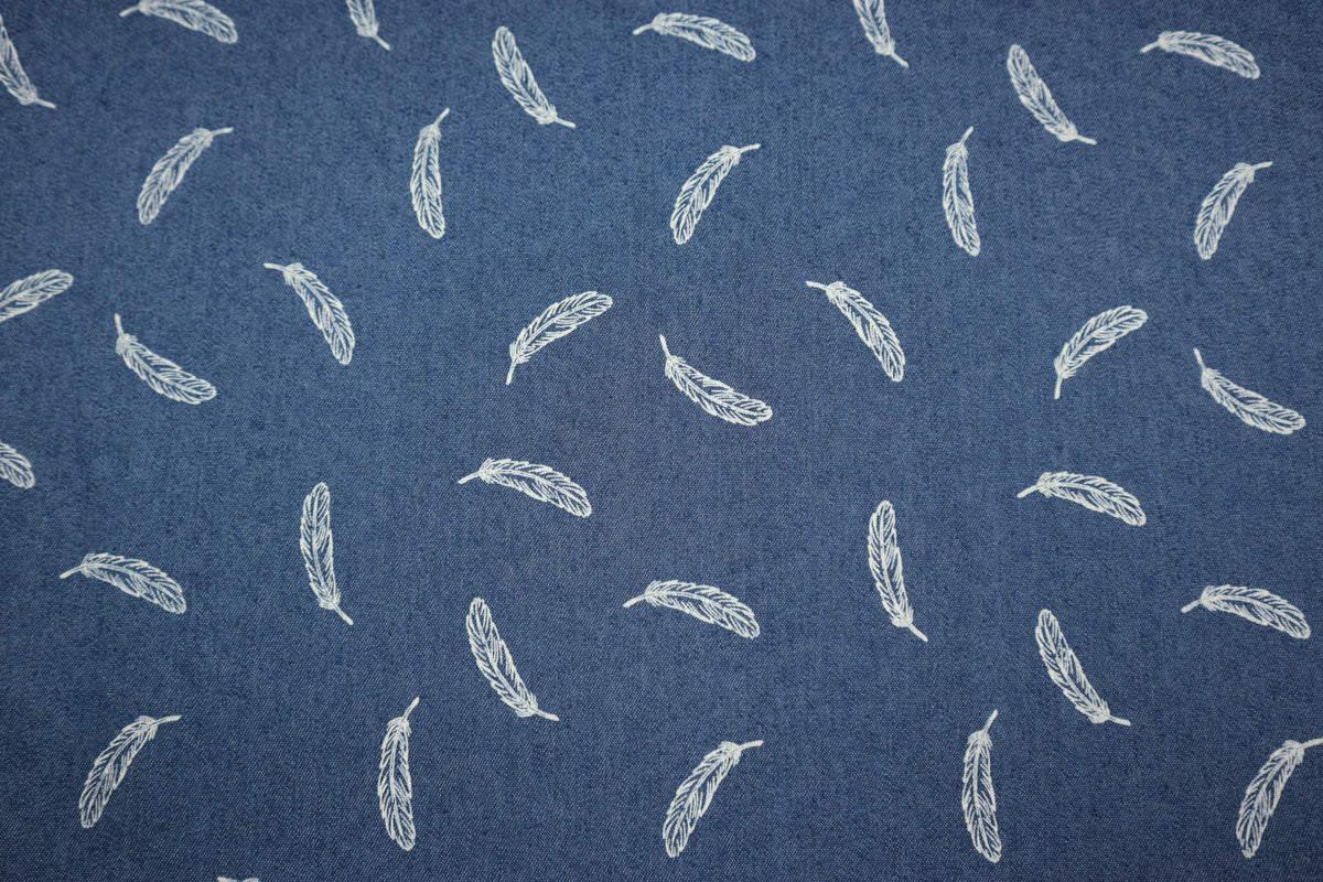 Leichter Denim Jeansstoff mit kleinen Federn.