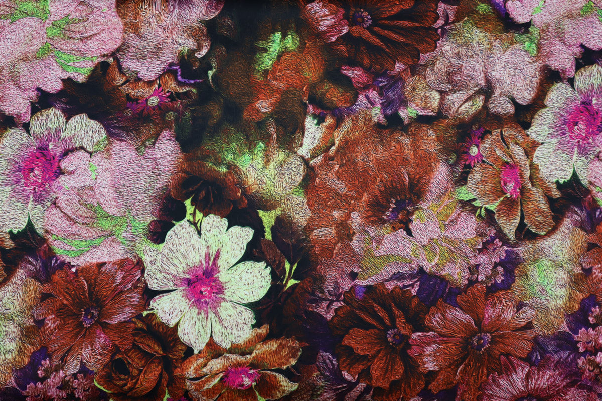 Super schöner Stretch-Satin mit wunderschönen Blumen im Aquarellstil.