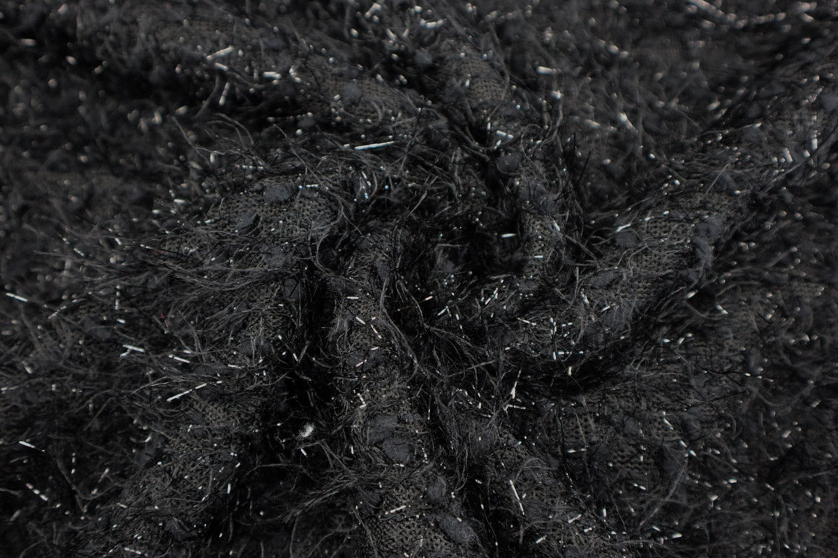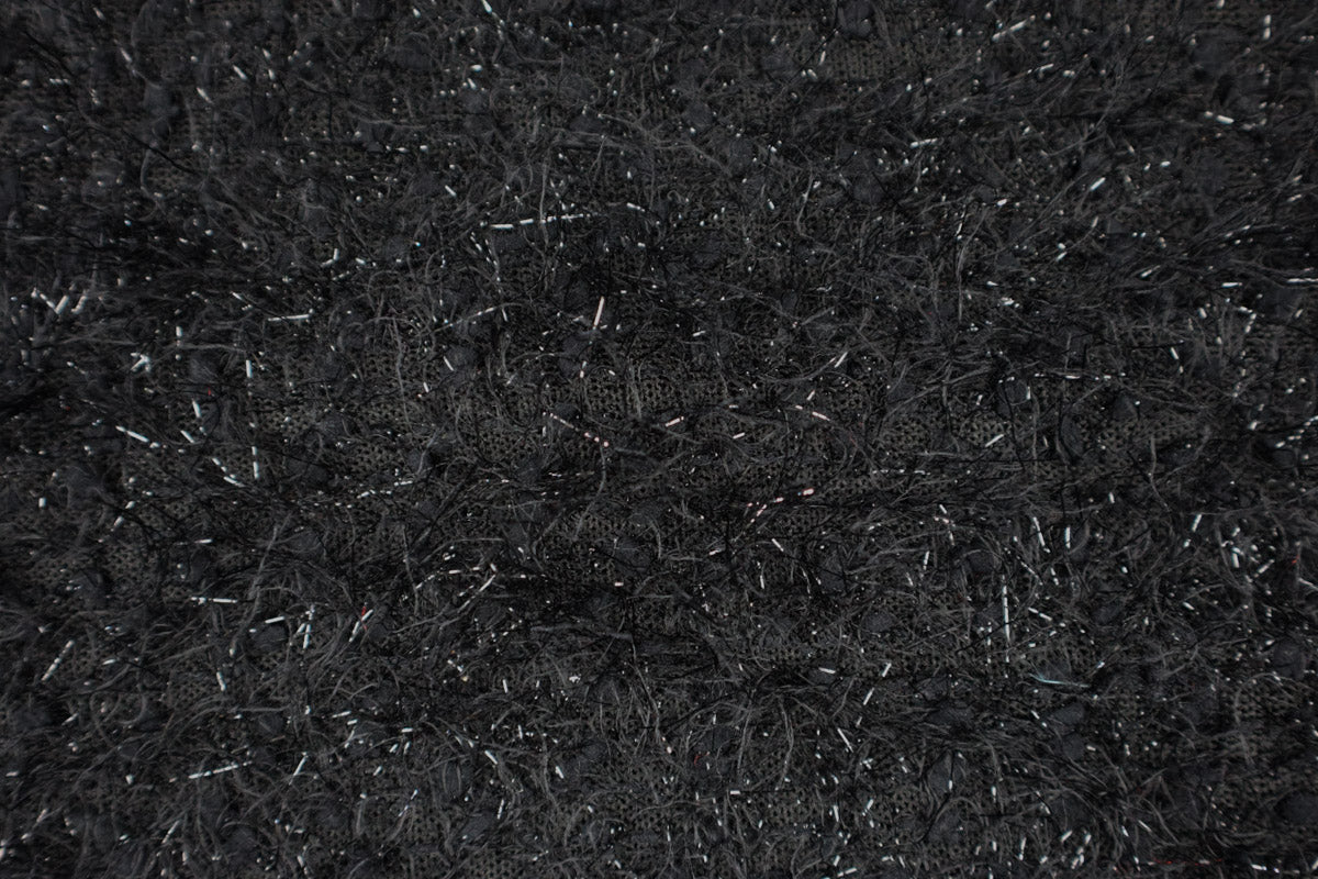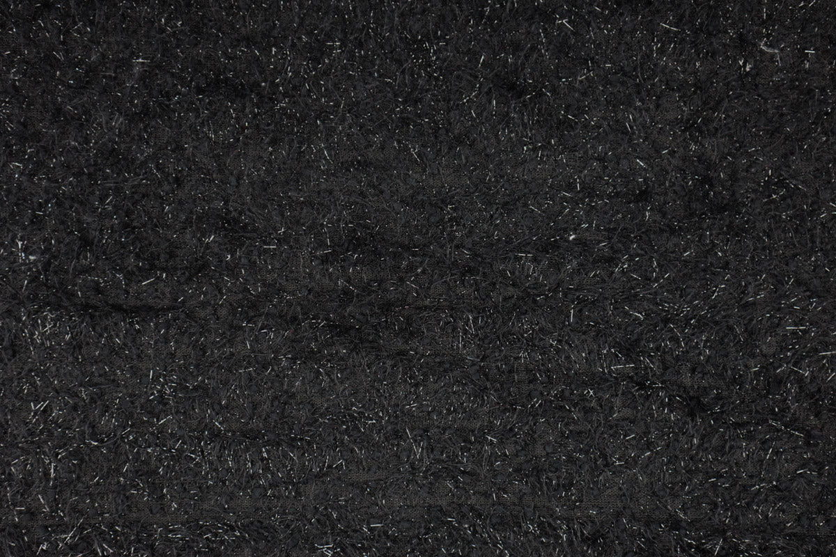 Flauschiger, schwarzer Strickstoff mit schimmernden, silbernen Lurexfäden.