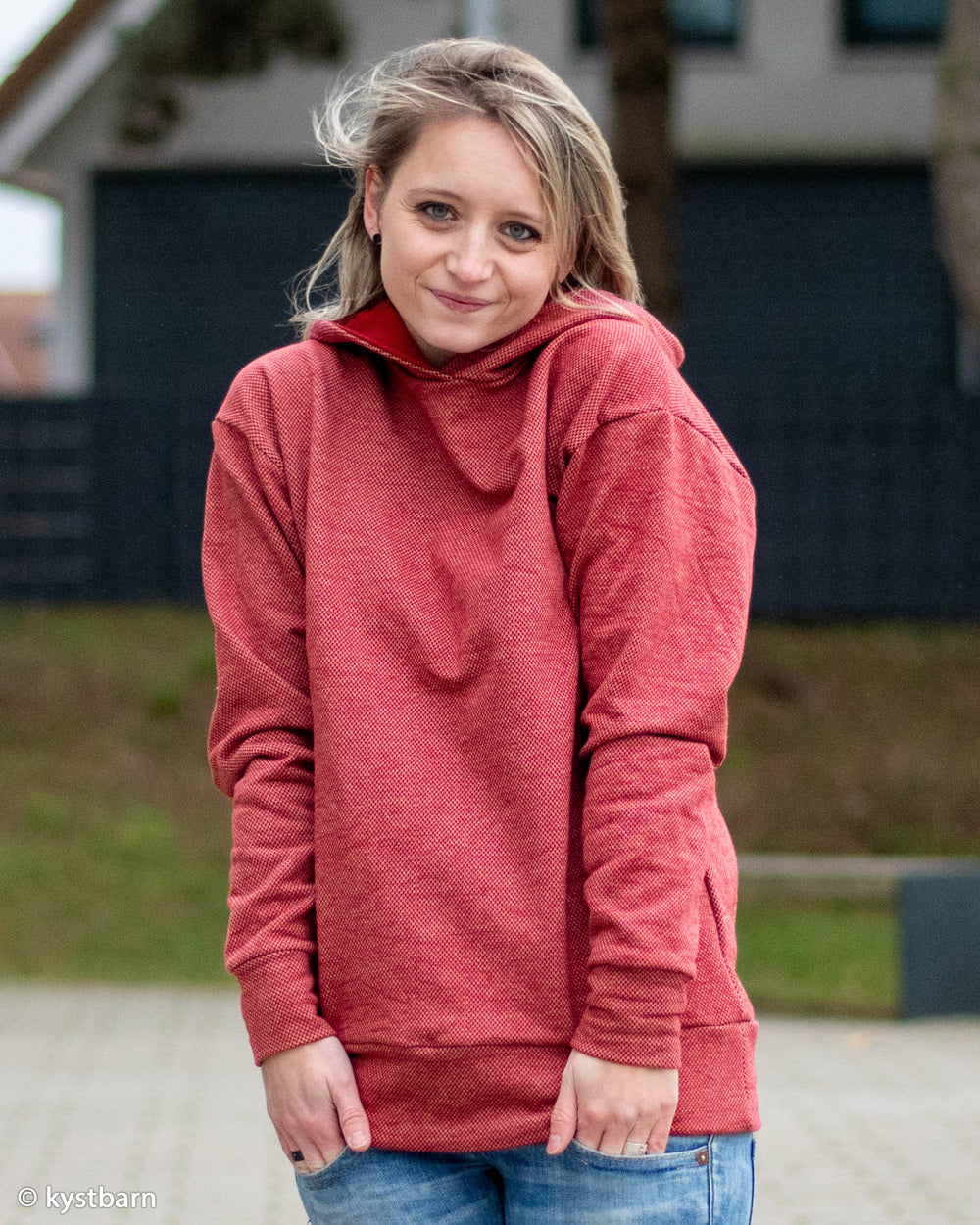 Auf der linken Stoffseite ist der Sweat angeraut und dadurch ganz kuschelig weich im Griff. Der Stoff ist etwas dicker als ein herkömmlicher Sweatstoff aber dennoch dehnbar und weich.