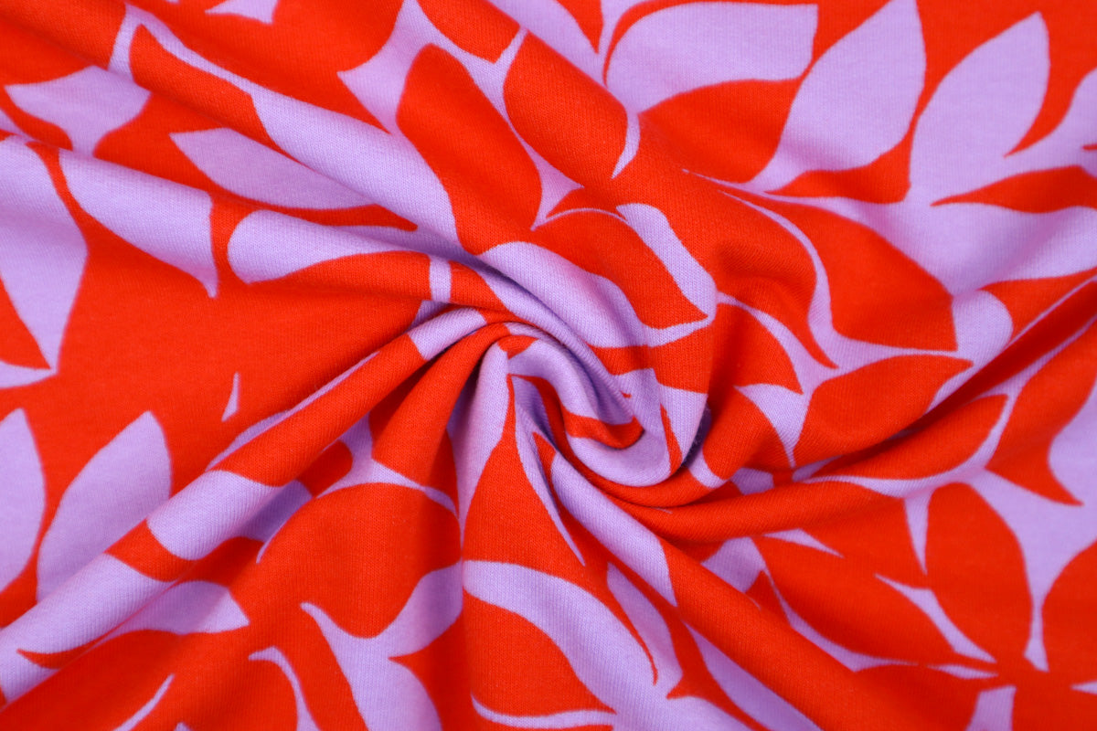 Super schöner Sweatshirtstoff mit farbenfrohem Blätter-Muster.