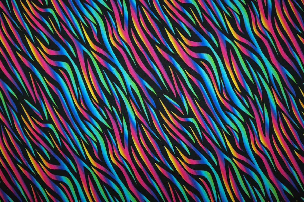 Cooles Design mit bunten, regenbogenfarbenen Flammen auf schwarzen Hintergrund.