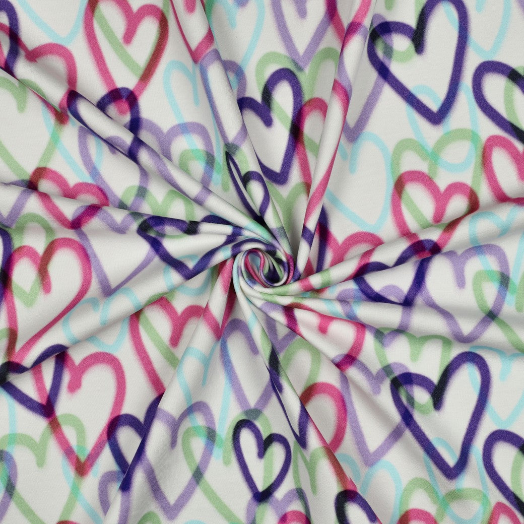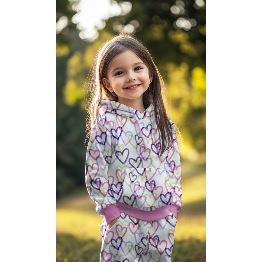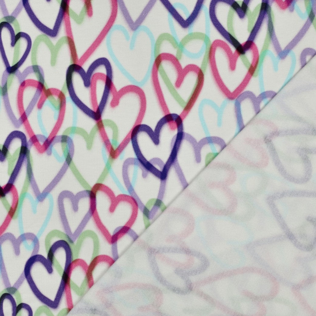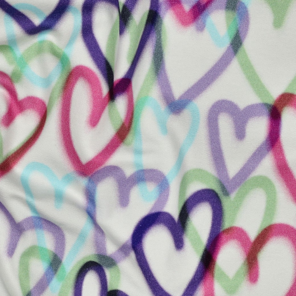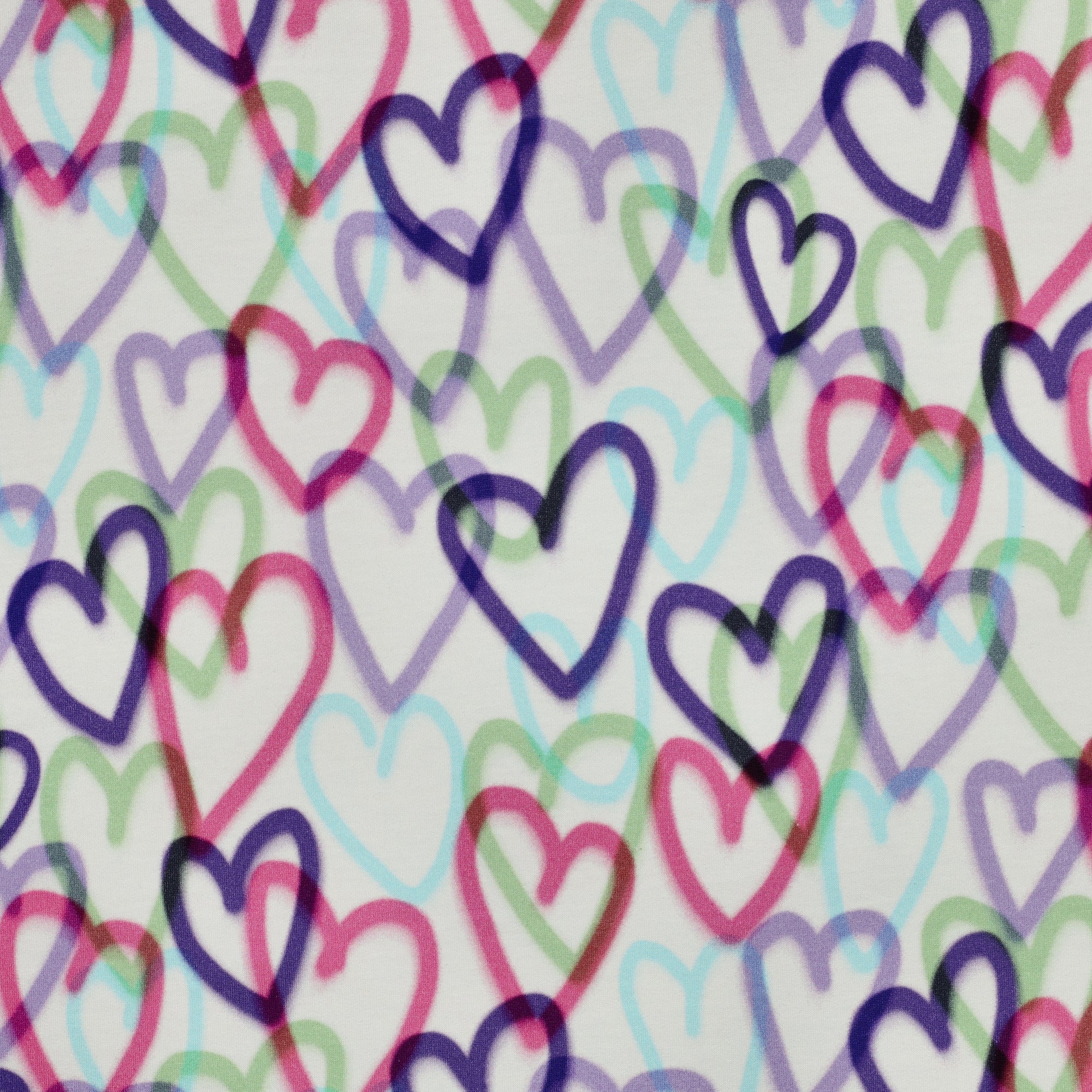 Schönes Muster mit bunten Herzen auf naturweißem Hintergrund.