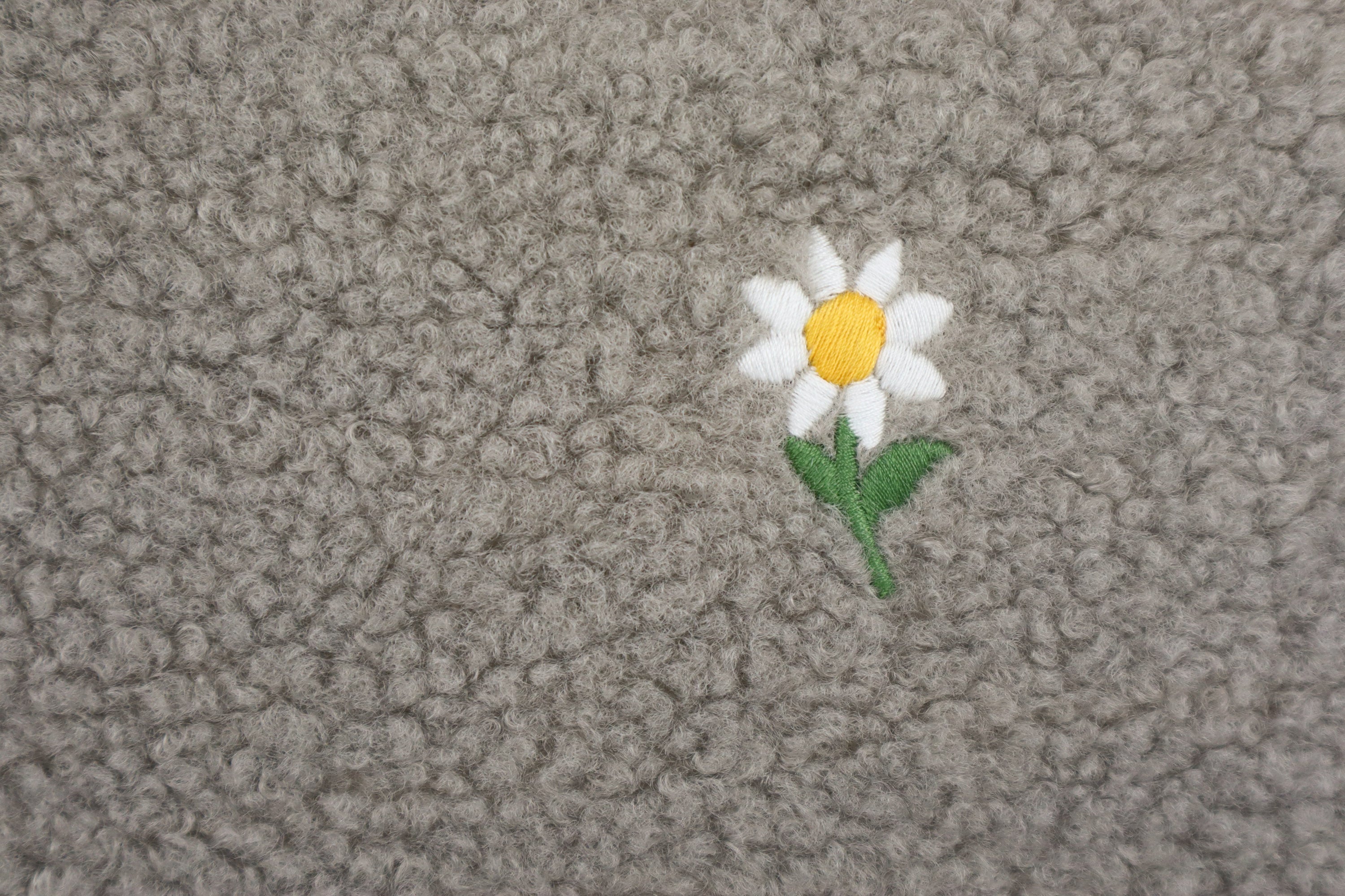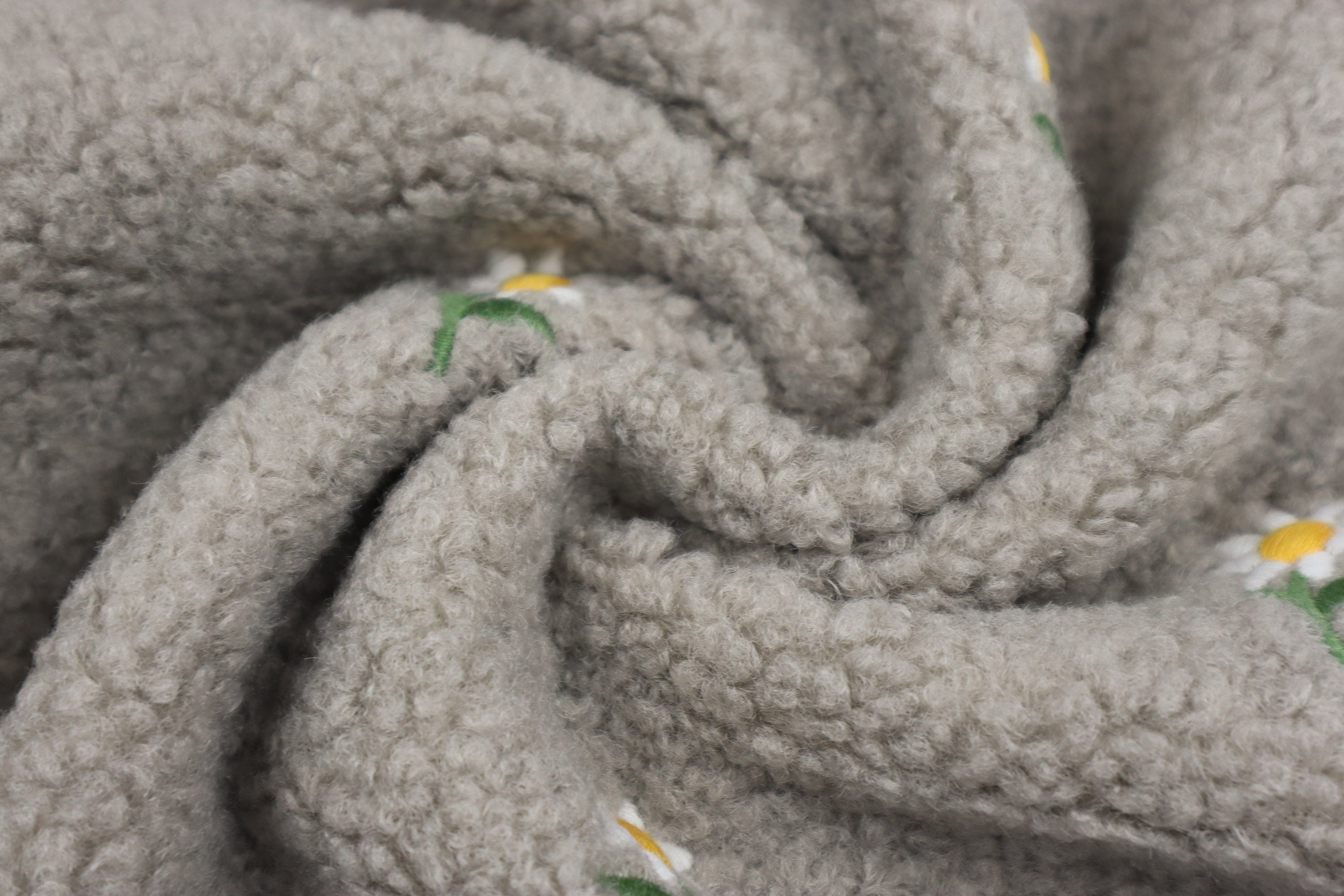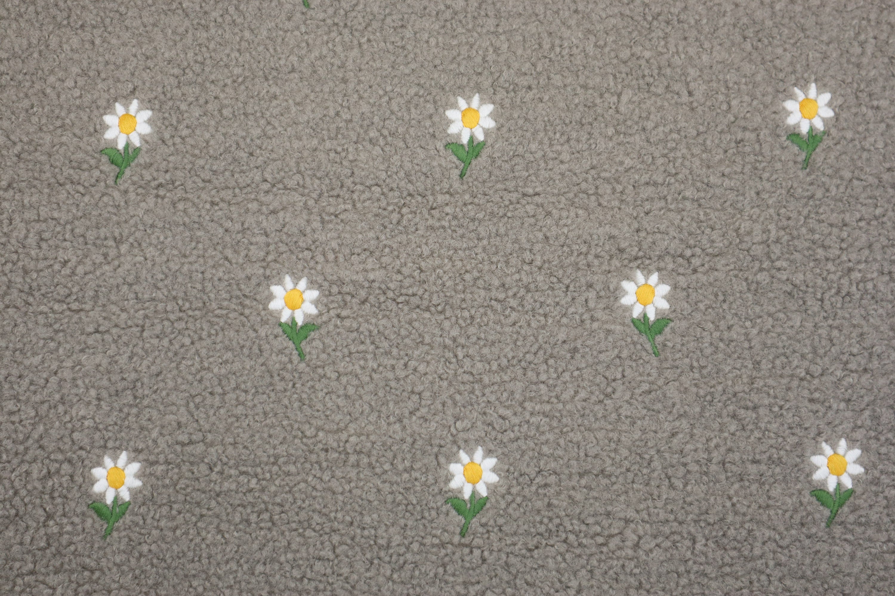 Kuschelig weicher Teddystoff mit Blumenstickerei.