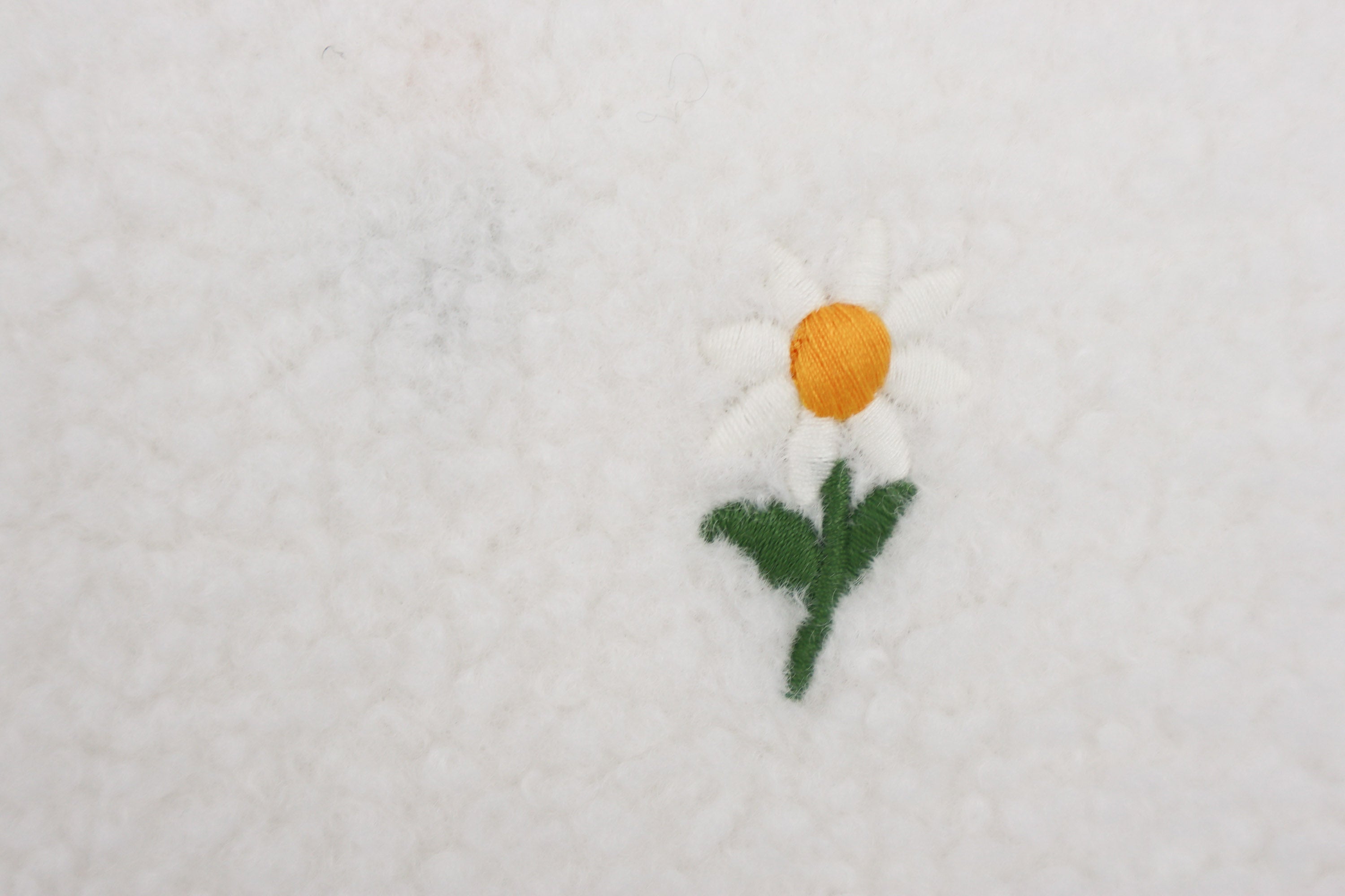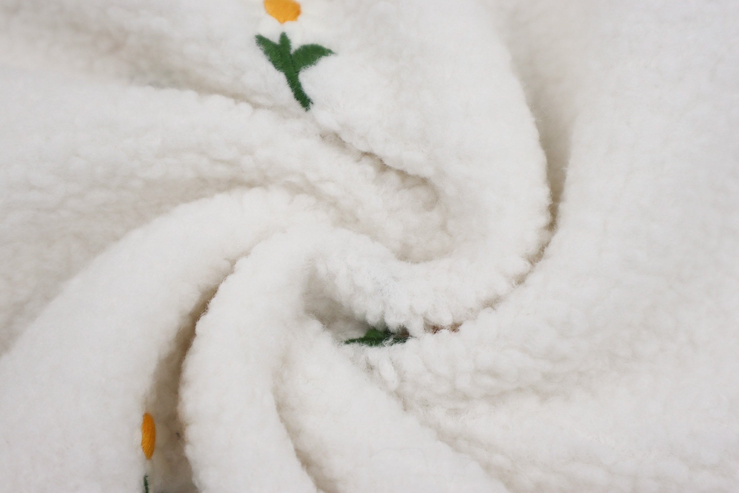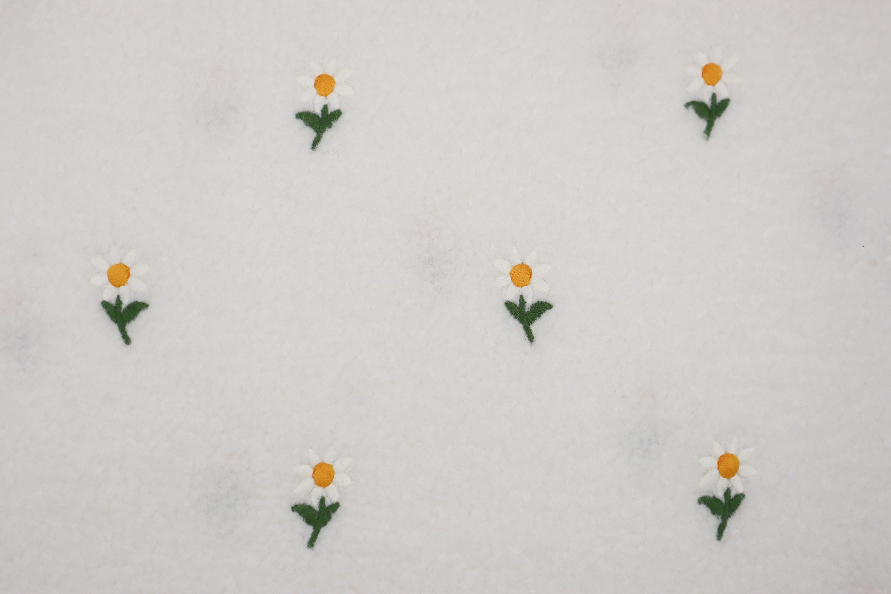 Kuschelig weicher Teddystoff mit Blumenstickerei.