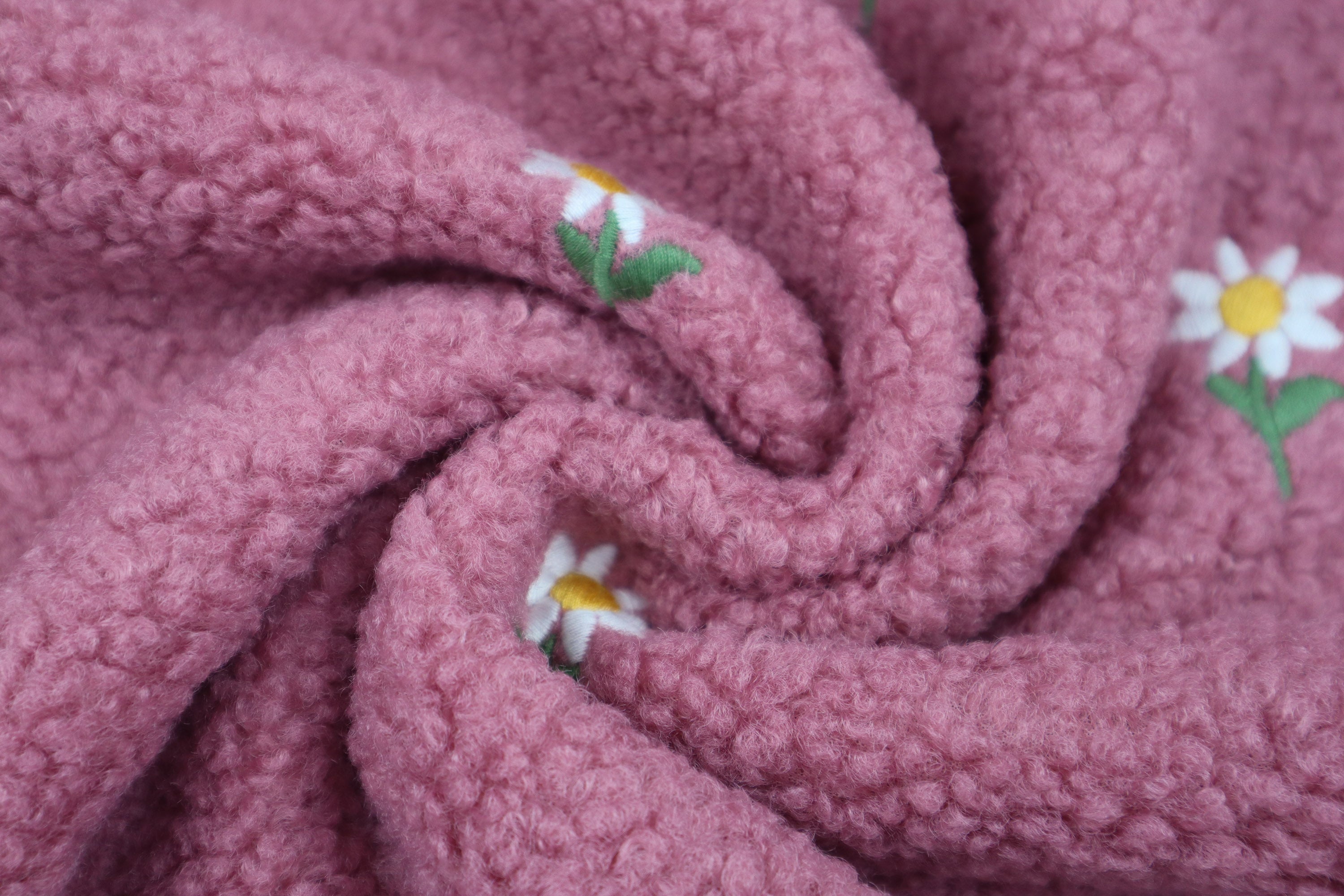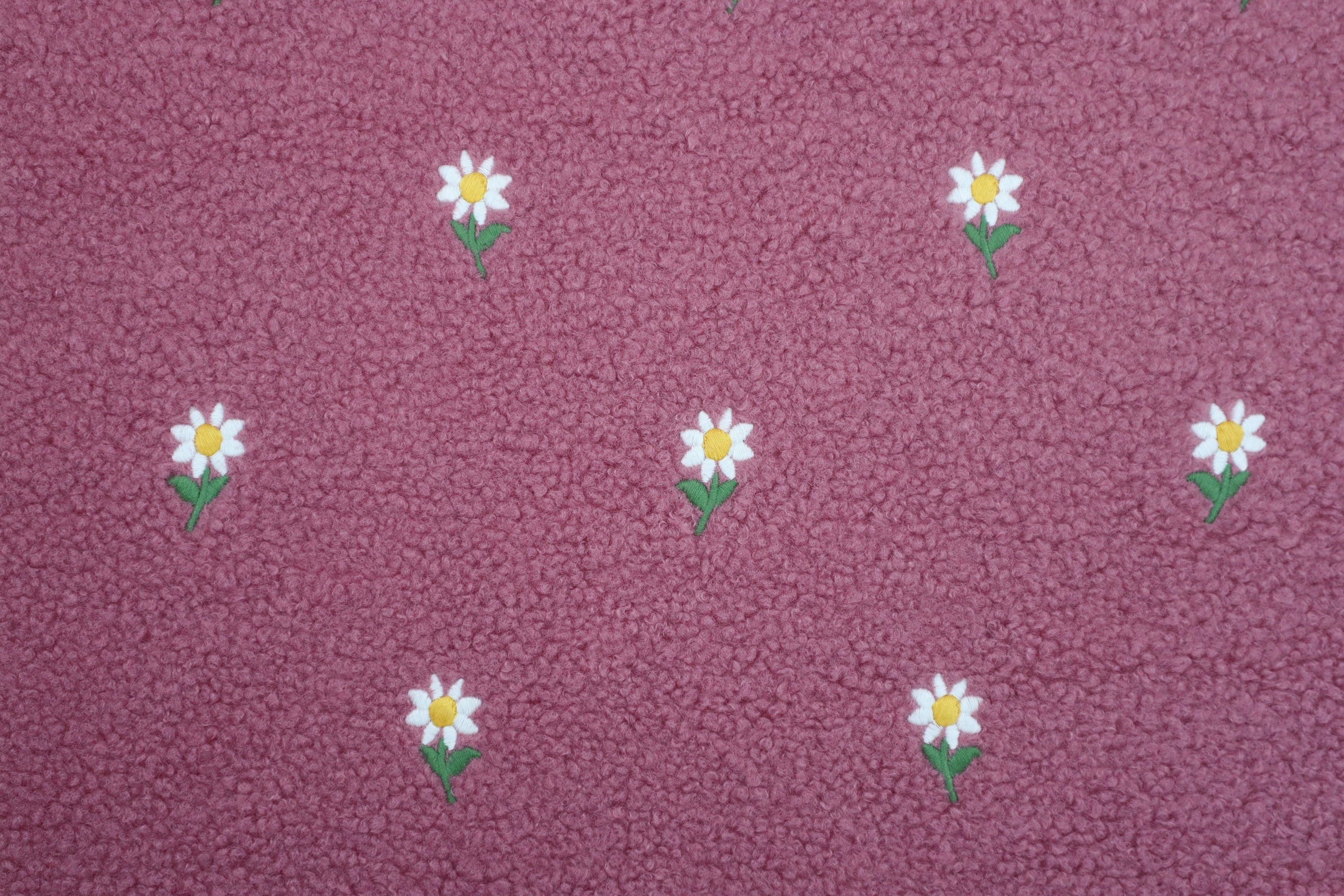 Kuschelig weicher Teddystoff mit Blumenstickerei.