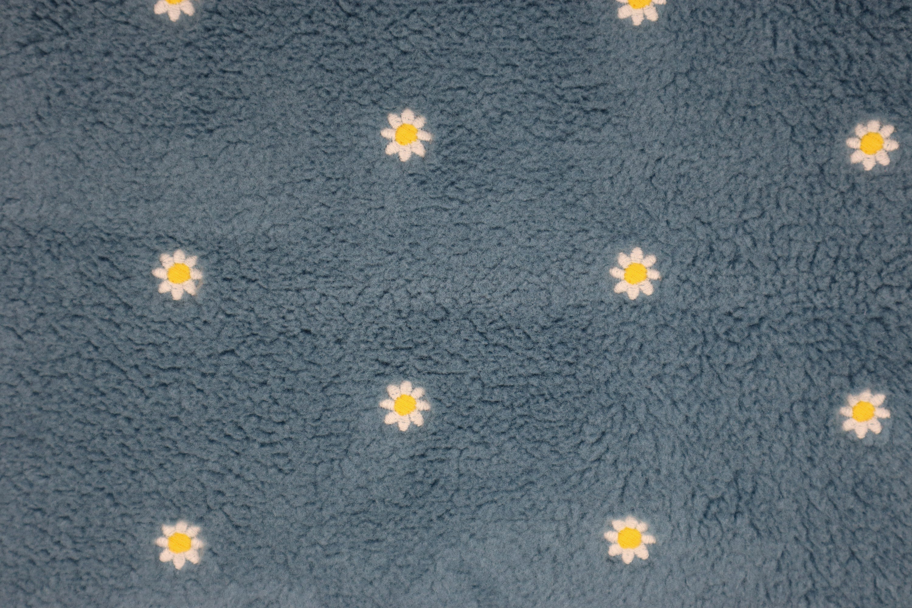 Kuschelig weicher Teddystoff mit Blumenstickerei.