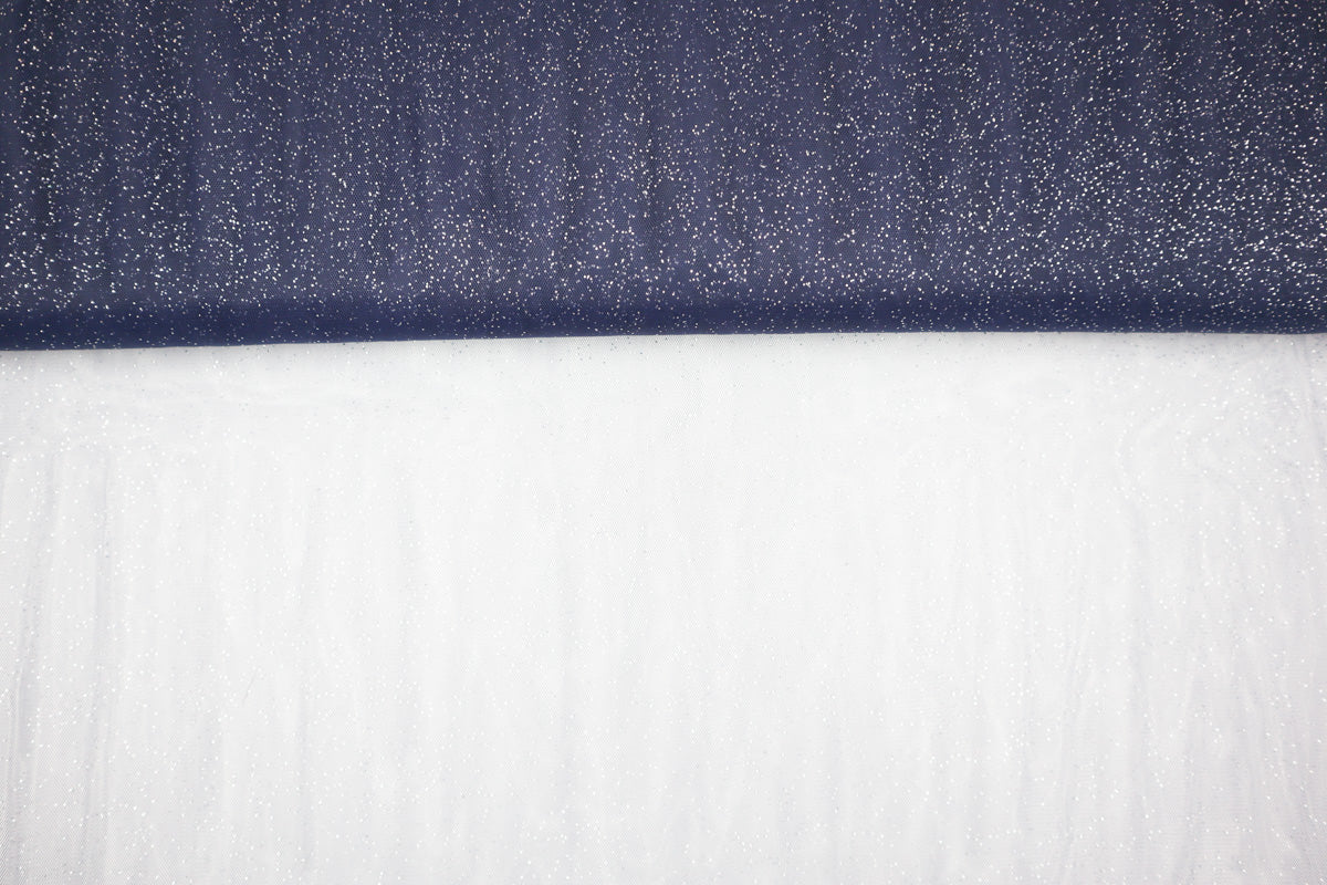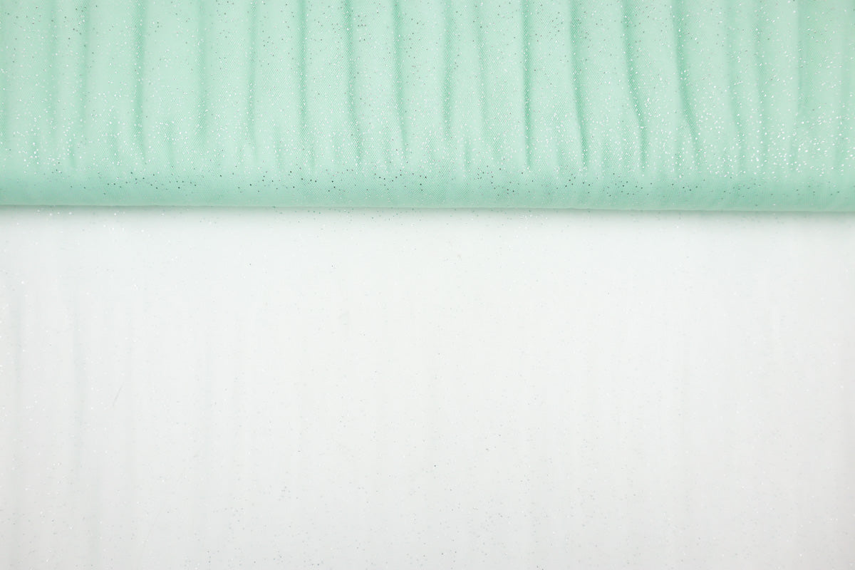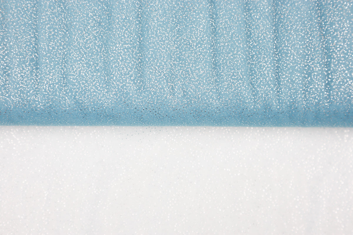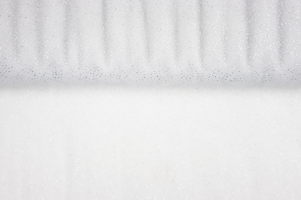 Der traumhaft weiche Tüll ist mit silberfarbenem Glitzer versehen.