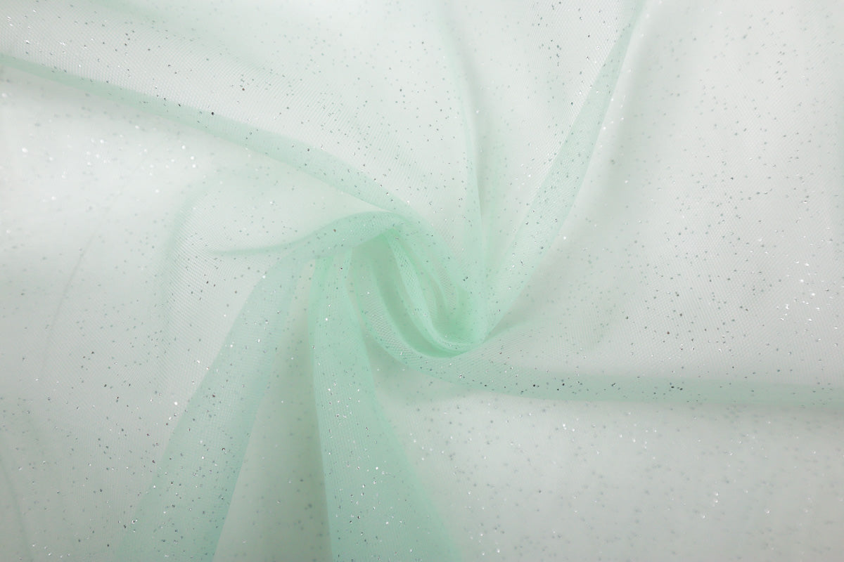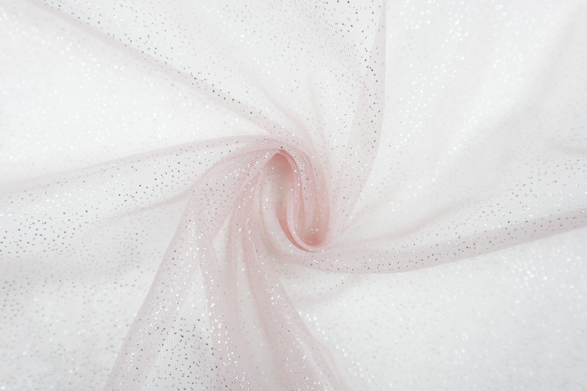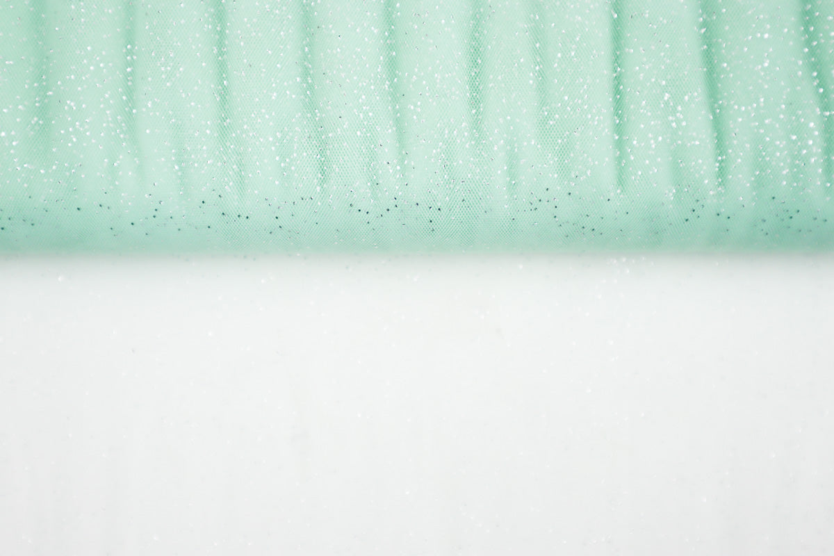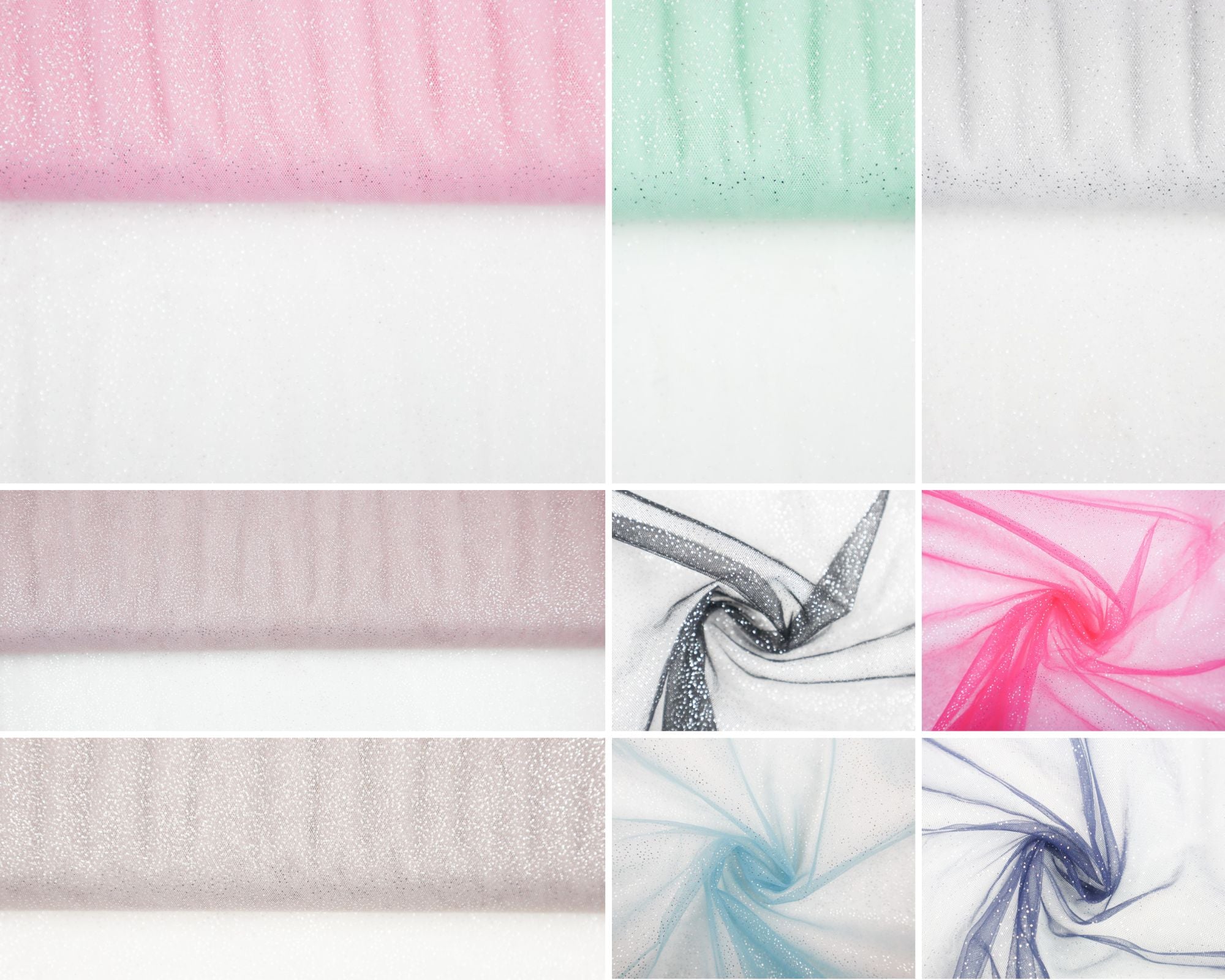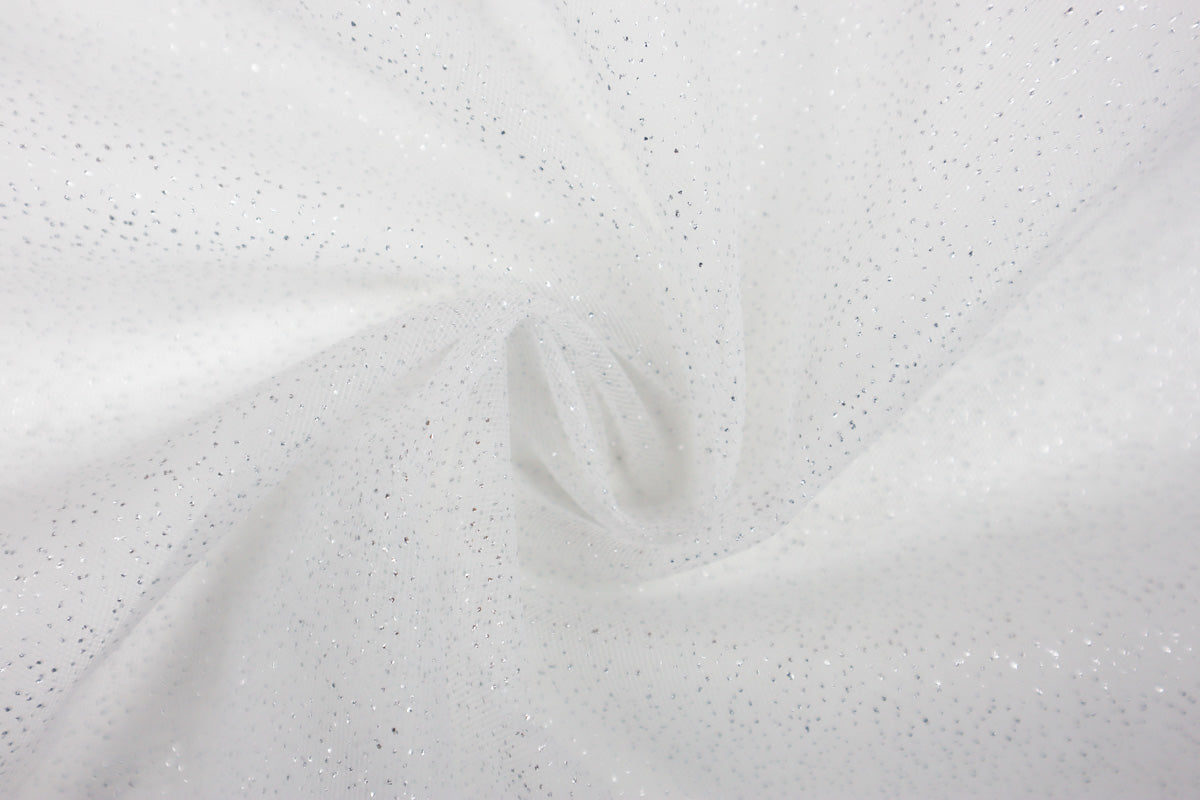 Der traumhaft weiche Tüll ist mit silberfarbenem Glitzer versehen.
