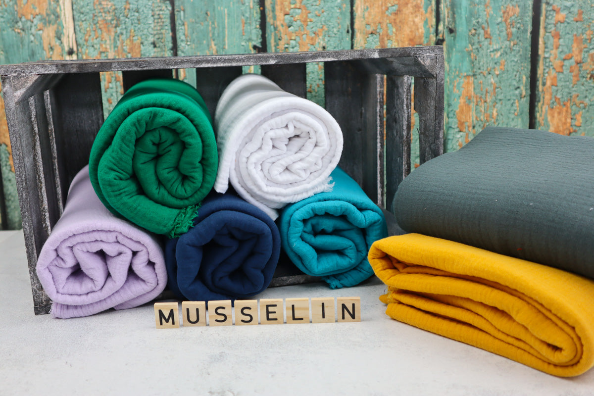 In diesem Stoffpaket findet ihr eine tolle Auswahl aktueller Musselinstoffe aus unserem Sortiment mit einer Mindestlänge von ca 30 cm.